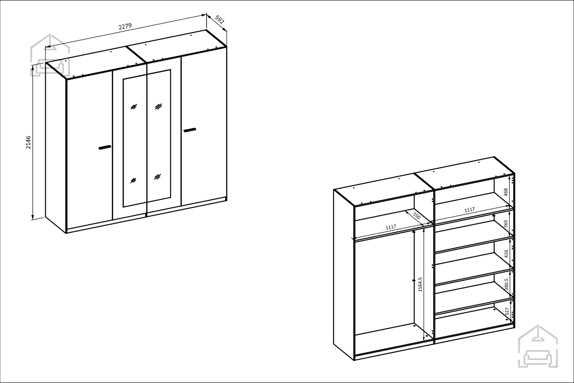Der Kleiderschrank besteht aus einer laminierten Platte mit einer Stärke von 22 mm, was für Langlebigkeit und hohe Widerstandsfähigkeit gegen Abnutzung sorgt. Die Rückwand ist aus einer HDF-Platte mit 3 mm Stärke gefertigt, die zusätzliche Stabilität und Robustheit bietet. Dank dieser hochwertigen Materialauswahl bleibt der Schrank auch bei täglicher Nutzung in einwandfreiem Zustand.