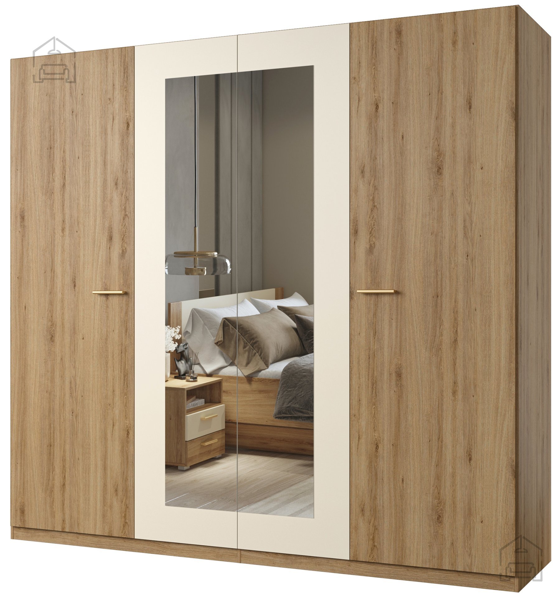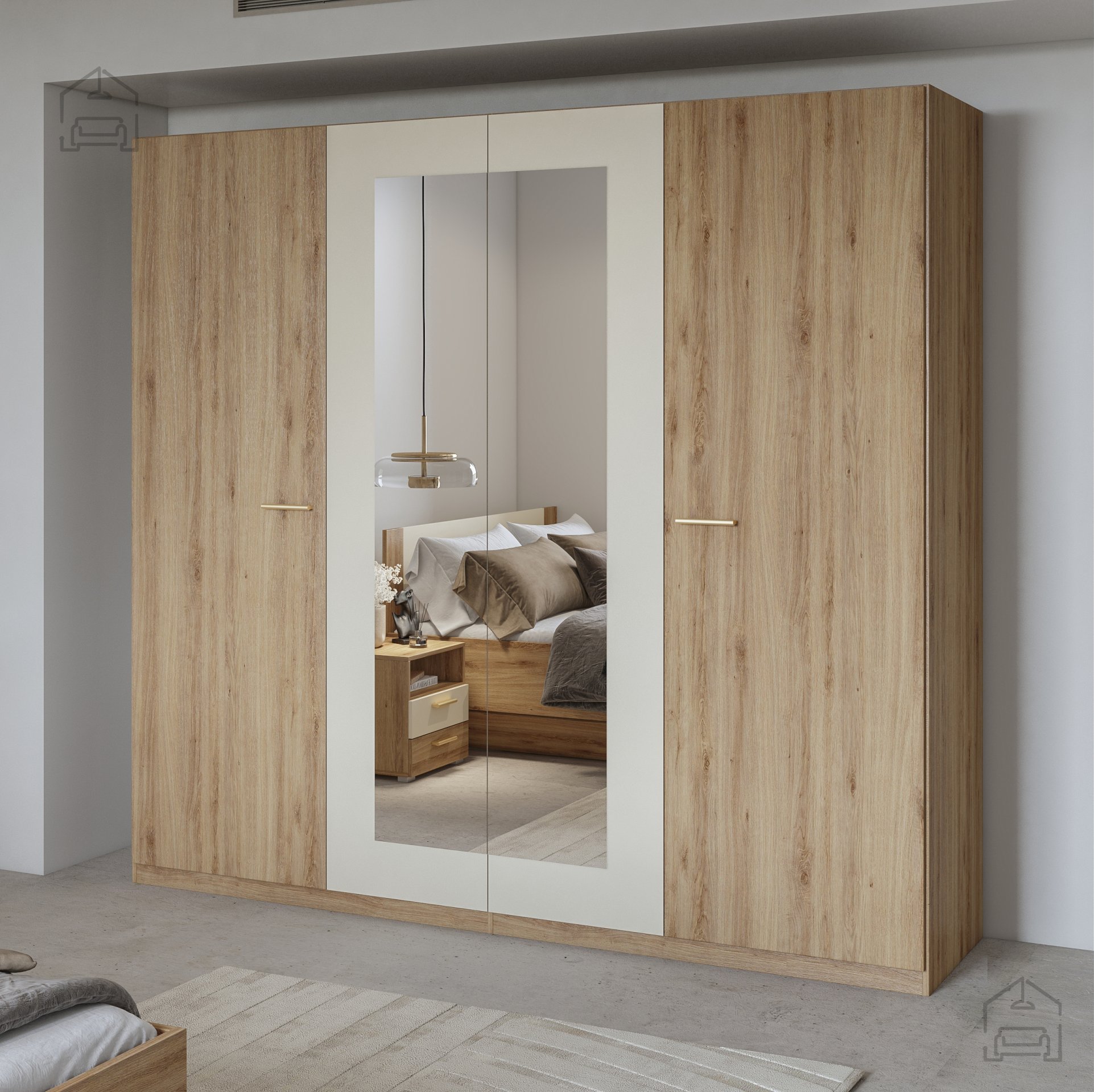 Der Kleiderschrank Vertina 20 überzeugt mit einer Farbe in Wildeiche, die jedem Raum natürliche Wärme und Eleganz verleiht. Die Kombination aus Wildeiche und beigefarbenen Akzenten schafft ein harmonisches und angenehmes Ambiente. Ob im Schlafzimmer, im Vorraum oder im Wohnzimmer – dieses Möbelstück zieht garantiert die Blicke auf sich und verleiht dem Raum eine stilvolle Note.