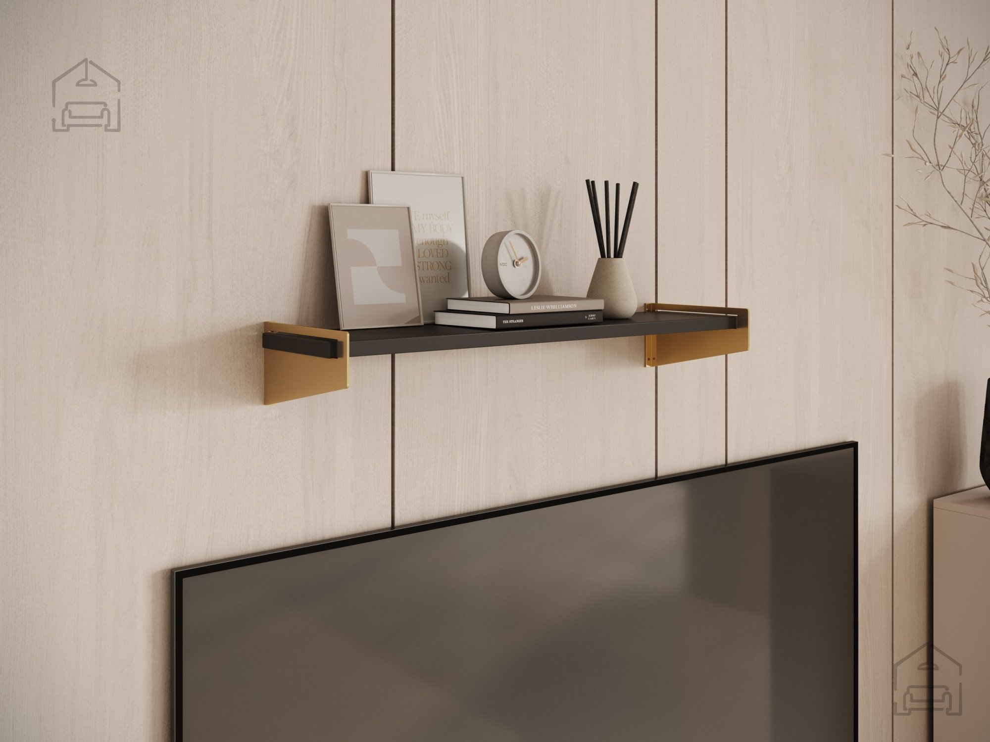 Laminierte Platte mit 16 mm Stärke in einer eleganten Farbkombination aus Gold und Schwarz: Wandregal Ivi – ADRK.
