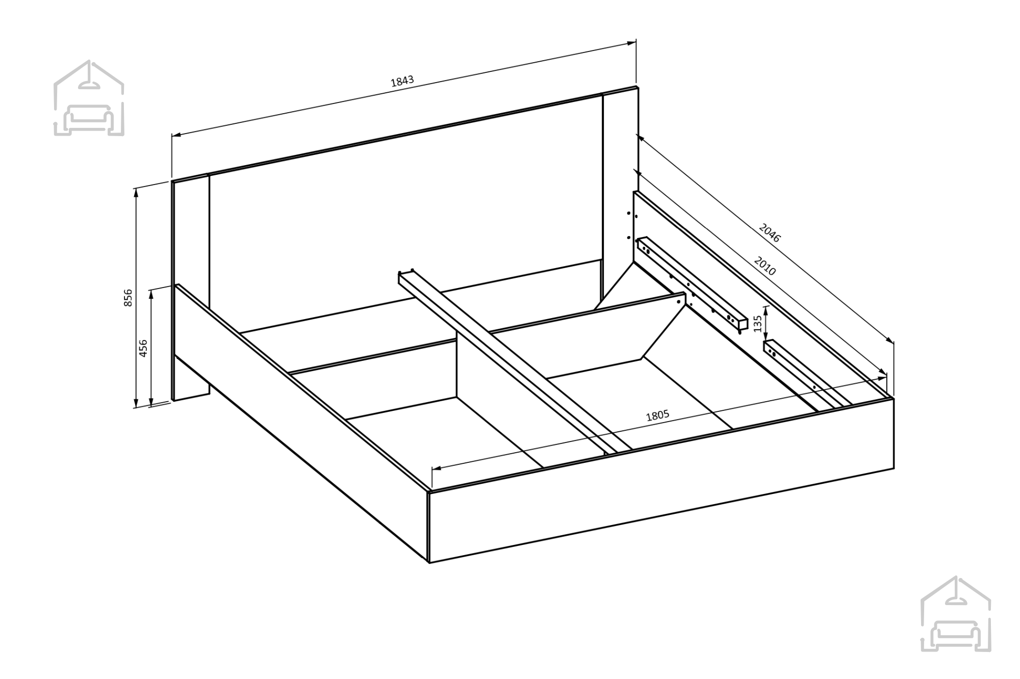 Das Bett Vertina wird aus einer laminierten Platte mit 22 mm Stärke gefertigt, was für Langlebigkeit und Widerstandsfähigkeit gegen Kratzer und andere Beschädigungen sorgt. Die Rückwand besteht aus einer 3 mm starken HDF-Platte, die zusätzliche Stabilität und Robustheit verleiht.