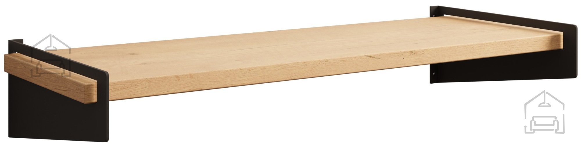Die 16 mm starke laminierte Platte überzeugt durch ihre Widerstandsfähigkeit und Langlebigkeit im täglichen Gebrauch. Ihre glatte, kratzfeste Oberfläche lässt sich leicht reinigen – ein feuchtes Tuch genügt, damit das Regal wieder wie neu aussieht. Die Farbkombination aus Schwarz und Eiche Lancelot passt nicht nur zu modernen Einrichtungstrends, sondern behält auch langfristig ihren attraktiven Look. Die Metallhalterungen sind mit einer Korrosionsschutzschicht versehen, was die Lebensdauer der gesamten Konstruktion zusätzlich verlängert.