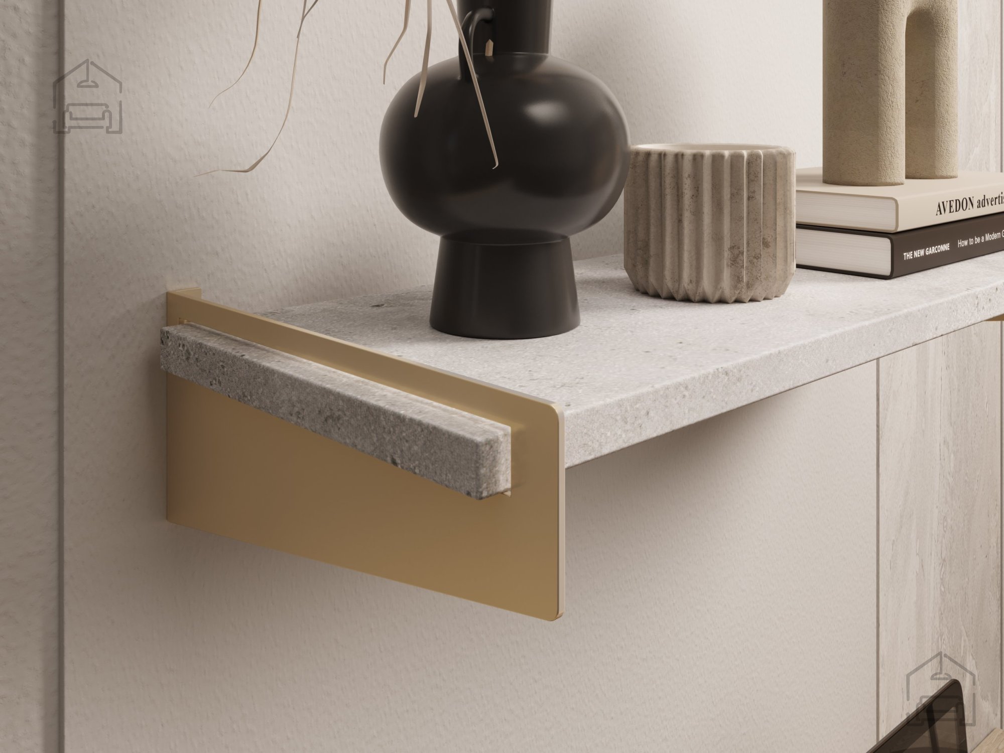 Mit dem Modell Ovo zeigt ADRK, dass selbst ein schlichtes Möbelstück zum ästhetischen Blickfang werden kann. Durch seine sanft abgerundete Form wirkt das Regal dezent und fügt sich harmonisch in jede Umgebung ein. Die laminierte Oberfläche ist pflegeleicht und kratzfest – ideal für den täglichen Gebrauch. Der Farbton in Gold-Beton ist neutral genug, um zu verschiedenen Wandfarben und Möbeln zu passen, und dennoch markant genug, um ins Auge zu fallen.