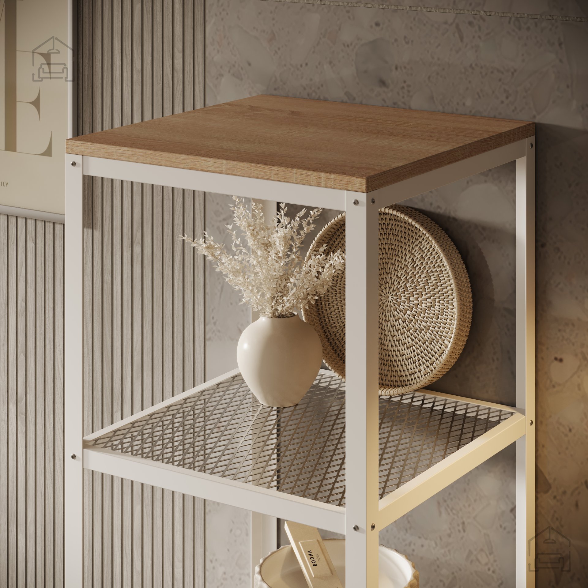 Ein weiteres Highlight des Regals Reli sind die Regalböden aus laminierten Platten mit natürlicher Optik, die dem Raum Wärme und Behaglichkeit verleihen. Die Oberflächen lassen sich leicht reinigen, sind feuchtigkeitsresistent und unempfindlich gegenüber mechanischen Einwirkungen – eine praktische Wahl für jedes Zuhause. Reli fügt sich harmonisch in verschiedenste Einrichtungsstile ein, von modern bis hin zu gemütlichen Dachwohnungen.
