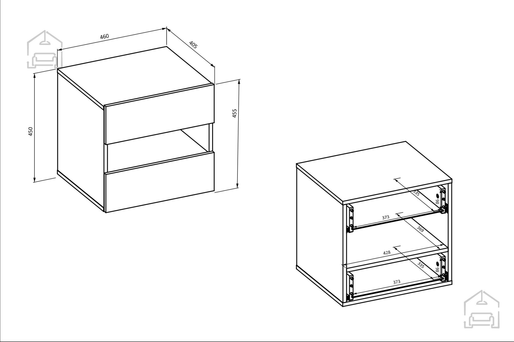 Das Nachtkästchen Impressio wird aus einer 15 mm starken Möbelplatte gefertigt, was Stabilität und Langlebigkeit garantiert. Die Rückwand besteht aus einer 3 mm starken HDF-Platte, die zusätzliche Festigkeit und Robustheit verleiht.