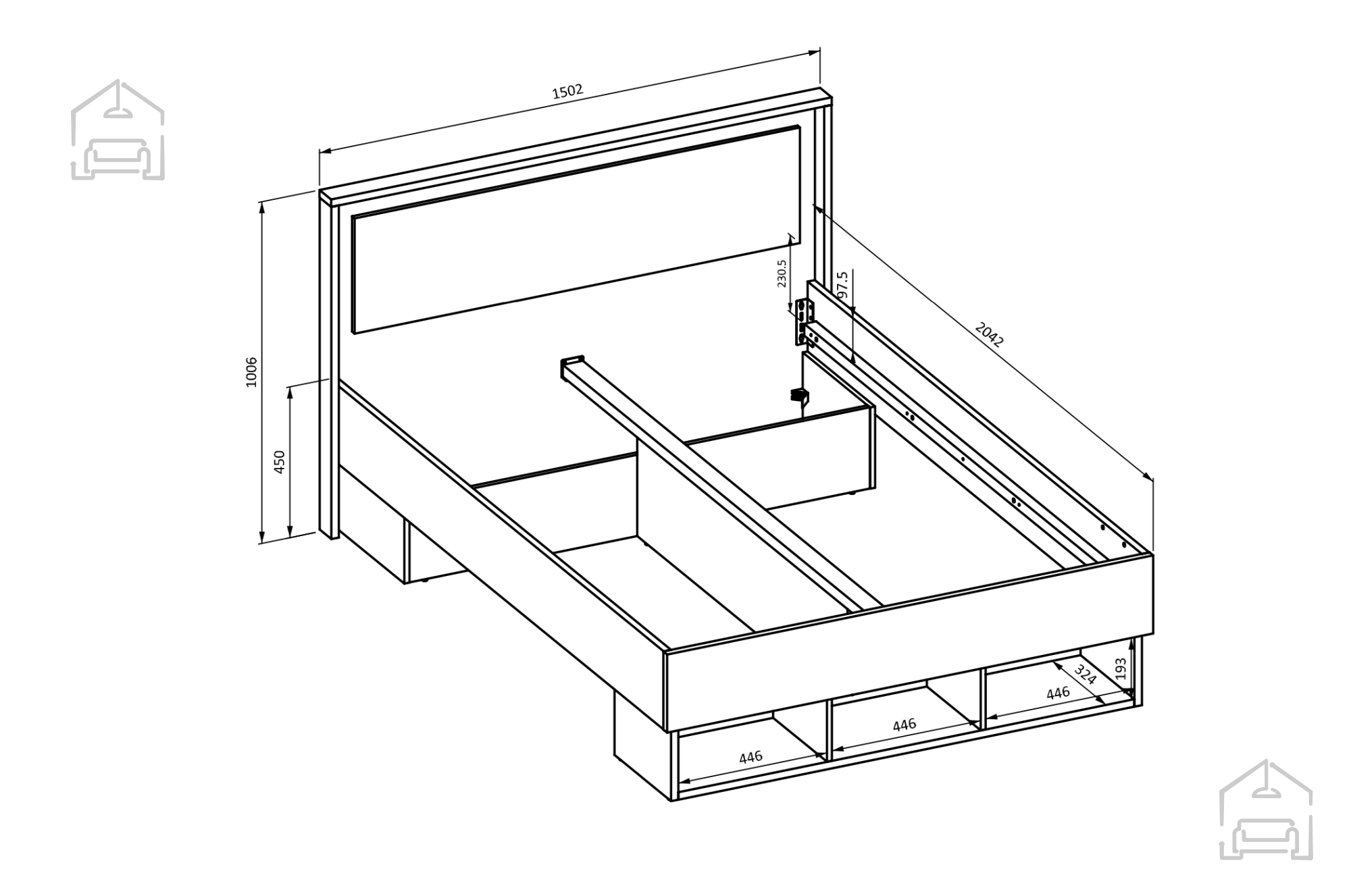 Das Bett besteht aus einer Möbelplatte mit 15 mm Stärke, was für Stabilität und Langlebigkeit sorgt. Die Rückwand ist aus einer HDF-Platte mit 3 mm Stärke gefertigt, was die Stabilität und Qualität zusätzlich erhöht. Alle Bestandteile sind sorgfältig ausgewählt, um eine lange Lebensdauer und einfache Pflege zu gewährleisten.