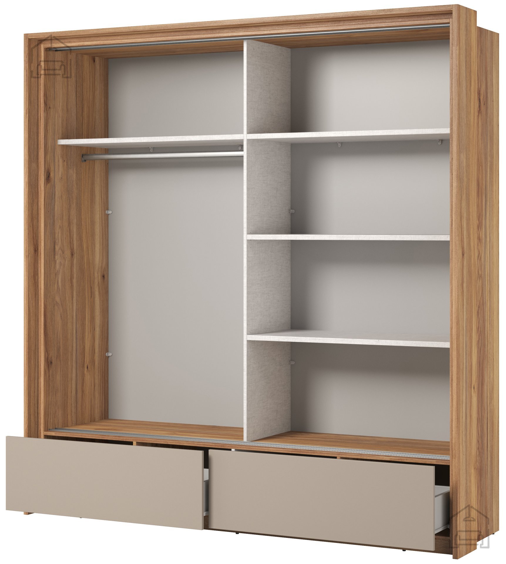 Mit seinem großzügigen Innenraum und der durchdachten Anordnung der Fächer bietet der Impressio genügend Platz für all Ihre Kleidungsstücke. Ob Mäntel, Alltagskleidung oder saisonale Accessoires – alles lässt sich übersichtlich verstauen. Die Türen sind so gestaltet, dass Sie schnellen und bequemen Zugriff auf Ihre Sachen haben – so haben Sie immer alles griffbereit.
