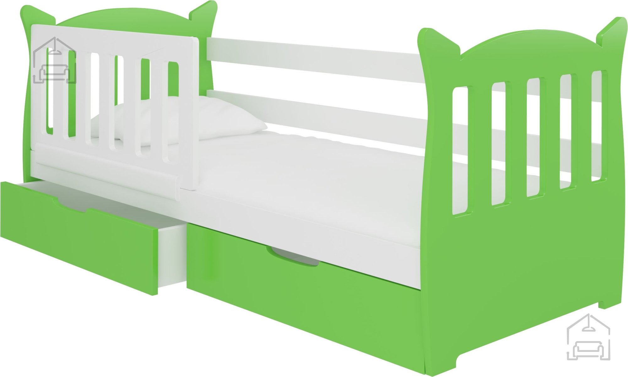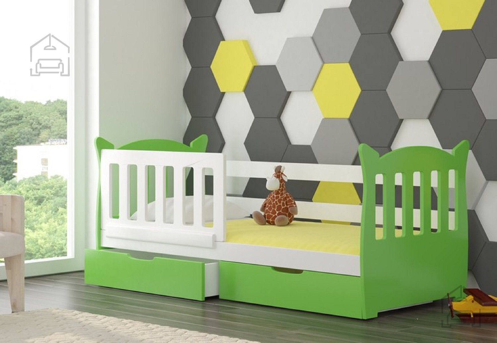 Entdecken Sie den Zauber des Kinderbetts Lena, das mit viel Liebe zum Detail für Komfort und Sicherheit Ihrer Kleinsten entworfen wurde. Mit seinen Maßen von 91x165x75 cm passt dieses Bett perfekt in jedes Kinderzimmer – egal ob für einen Jungen oder ein Mädchen. Die elegante Farbkombination aus Weiß und Grün sorgt für eine frische und helle Atmosphäre, die besonders in Kinderzimmern wichtig ist.