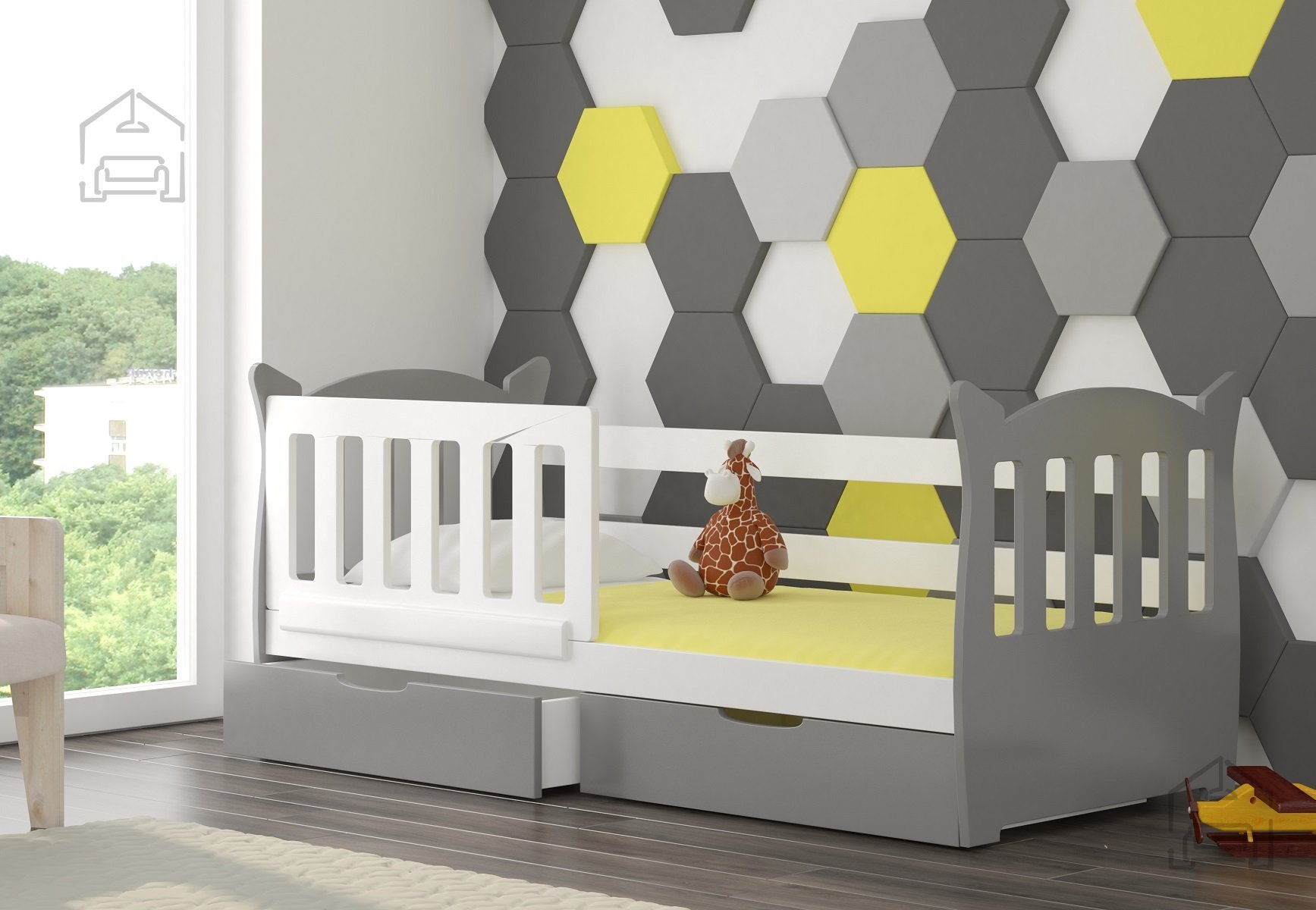 Entdecken Sie den Zauber des Kinderbetts Lena, das mit viel Liebe zum Detail sowie im Hinblick auf Komfort und Sicherheit Ihrer Kleinsten entworfen wurde. Mit seinen Maßen von 91x165x75 cm passt dieses Bett perfekt in jedes Kinderzimmer – egal, ob für einen Jungen oder ein Mädchen. Die elegante Farbkombination in Weiß und Grau sorgt für eine frische und helle Atmosphäre, was besonders in Kinderzimmern wichtig ist.