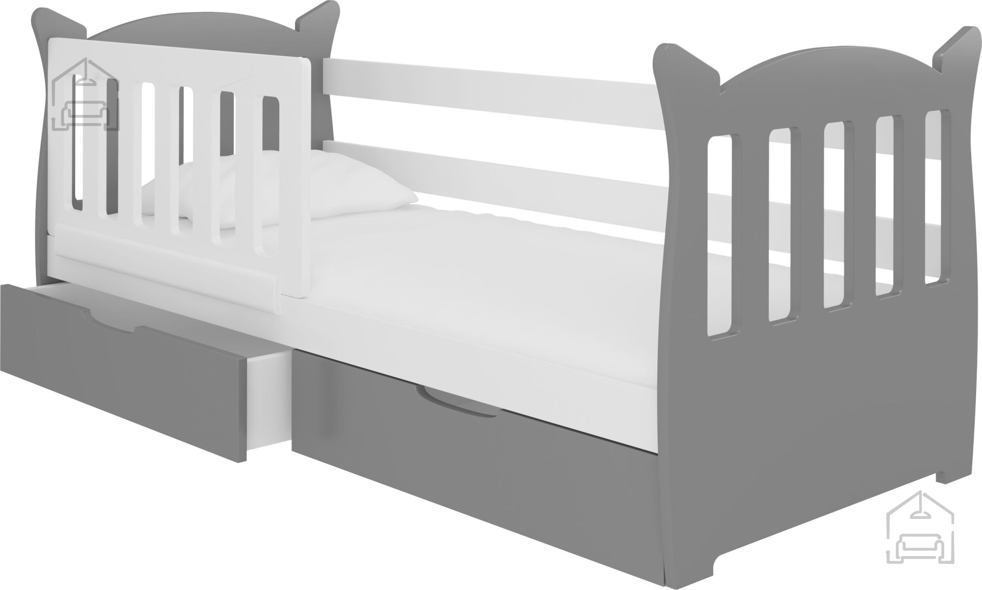 Das Kinderbett Lena überzeugt nicht nur durch sein ansprechendes Design, sondern auch durch seine praktische Ausstattung. Eine Schutzgitter sorgt für zusätzliche Sicherheit während des Schlafs – ein beruhigendes Detail für Eltern, die möchten, dass sich ihr Kind rundum geborgen fühlt. Geräumige und praktische Bettzeugladen erleichtern das Verstauen und tragen zu einem ordentlichen Kinderzimmer bei.