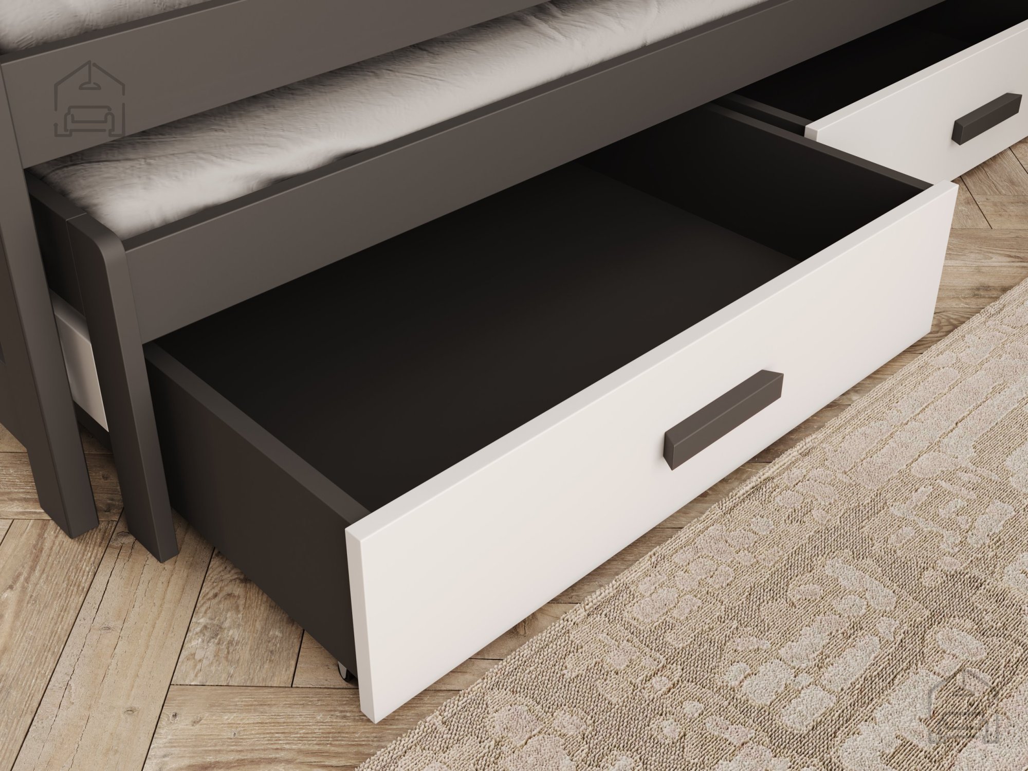 Mit diesem Bett schenken Sie Ihrem Kind einen behaglichen Schlafplatz und sorgen gleichzeitig für Ordnung im Zimmer. Durchdachte Details wie das ausziehbare Zusatzbett und die Schublade sind eine ideale Lösung für moderne Familien, die Funktionalität und Ästhetik zu schätzen wissen. Das Bett ist nicht nur ein Möbelstück, sondern ein Teil des Zuhauses, in dem Ihr Kind Erinnerungen schafft – von den ersten Spielen bis zu langen Gesprächen vor dem Einschlafen.