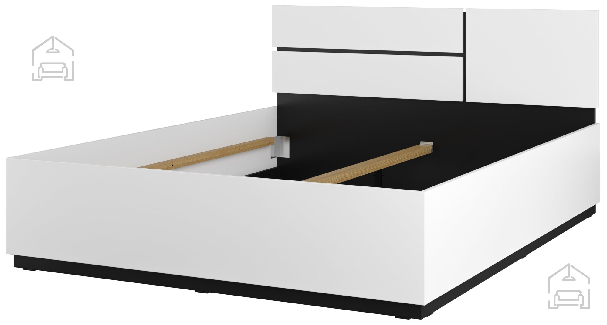 Das elegante Design des Bettes Cross S passt hervorragend in jedes Zuhause – unabhängig vom Einrichtungsstil. Die Kombination aus Weiß und Schwarz lässt sich leicht mit anderen Möbelstücken abstimmen und sorgt für ein harmonisches Gesamtbild. Trotz des schlichten Designs überzeugt das Bett durch Stabilität und Zuverlässigkeit, da es aus hochwertigen Materialien gefertigt ist.