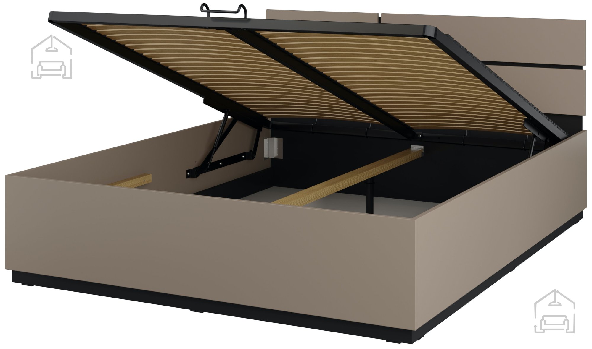 Das Bett Cross S überzeugt nicht nur optisch, sondern auch durch seine praktische Funktionalität. Der integrierte Hebemechanismus ermöglicht ein einfaches Anheben der Liegefläche und einen bequemen Zugang zum Stauraum darunter – ideal zum Aufbewahren von Bettwäsche oder anderen Utensilien. So bleibt Ihr Schlafzimmer stets ordentlich und aufgeräumt.