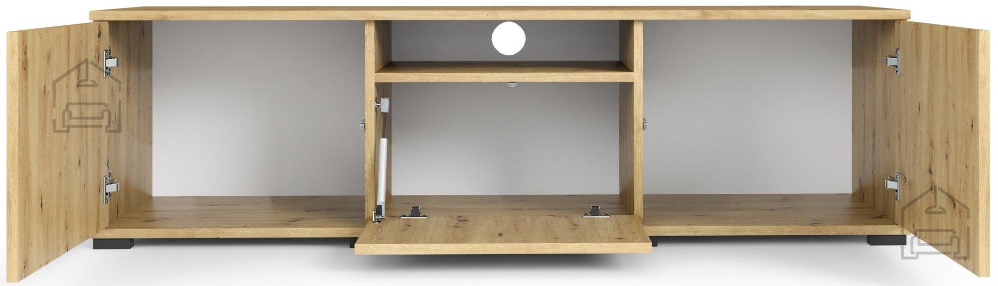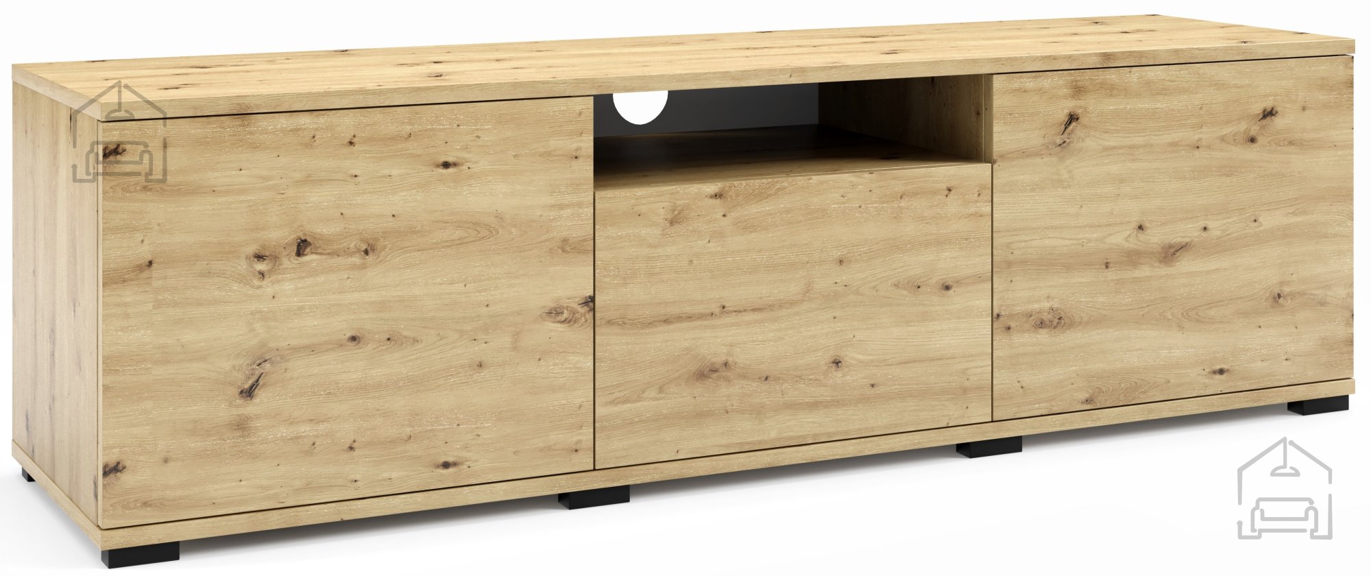 TV komoda Logan 150 cm se ponaša z elegantno estetiko, ki se brez težav zlije z različnimi stili notranje opreme. Barva artisan hrast prinaša toplino in naravni videz, ki bo vašemu dnevnemu prostoru dodal pridih elegance. Njene čiste linije in minimalističen dizajn so idealni za sodobna bivališča, hkrati pa se lahko prilagodi klasičnemu okolju, zaradi česar je vsestranska izbira za vsak dom.