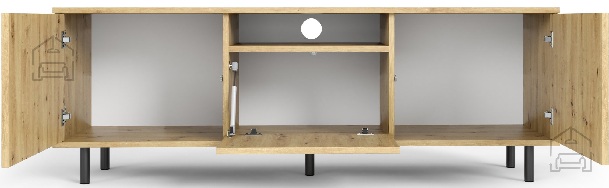Egal, ob Sie ein Liebhaber des modernen oder klassischen Stils sind, die TV-Kommode Logan 150 cm in der Farbe Artisan-Eiche ist eine ausgezeichnete Wahl für Ihr Zuhause. Ihre Kombination aus Ästhetik, Funktionalität und Qualität ist unübertroffen und macht sie zu einer perfekten Ergänzung Ihres Wohnraums. Ihre Fähigkeit, sich mit verschiedenen Einrichtungsstilen zu verbinden, stellt sicher, dass dieses Möbelstück in Ihrem Zuhause jederzeit großartig aussieht. Wählen Sie die TV-Kommode Logan 150 cm und lassen Sie Ihr Wohnzimmer in neuem Glanz erstrahlen.