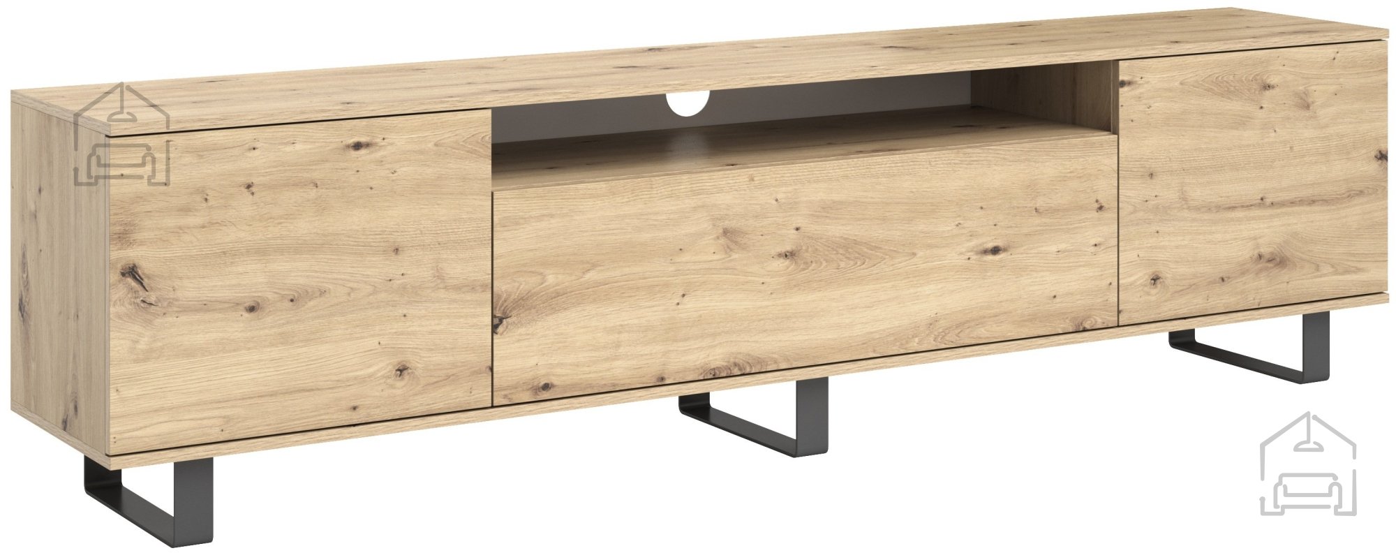 Mit den Abmessungen 180x40x42 cm ist das TV-Sideboard Logan ideal für größere Fernseher und bietet ausreichend Platz zur Aufbewahrung Ihrer Mediengeräte, Bücher, Dekorationsgegenstände und anderer wichtiger Dinge. Hergestellt aus laminierter Spanplatte, bietet es die Festigkeit und Haltbarkeit, die Sie für eine langfristige Nutzung benötigen. Die Farbe Eiche Artisan verleiht Wärme und eine natürliche Ästhetik, die sich nahtlos in jedes Interieur einfügt.