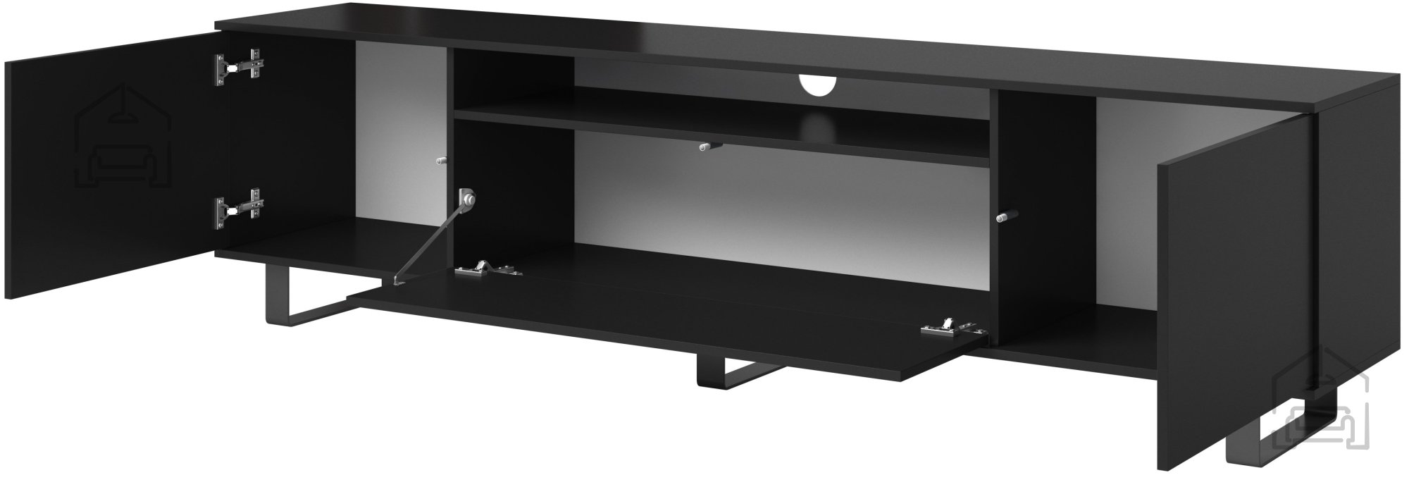 TV komoda Logan 180 cm v črni barvi je več kot le kos pohištva; je izjava o vašem stilu in okusu. S svojo eleganco, prostornostjo in trpežnostjo, bo postala središčna točka vašega dnevnega prostora. Ne odlašajte in omogočite svojemu domu preobrazbo, ki si jo zasluži, z nakupom te čudovite TV komode. Vaš dom si zasluži le najboljše, in TV komoda Logan je prav to - najboljša izbira za vas.