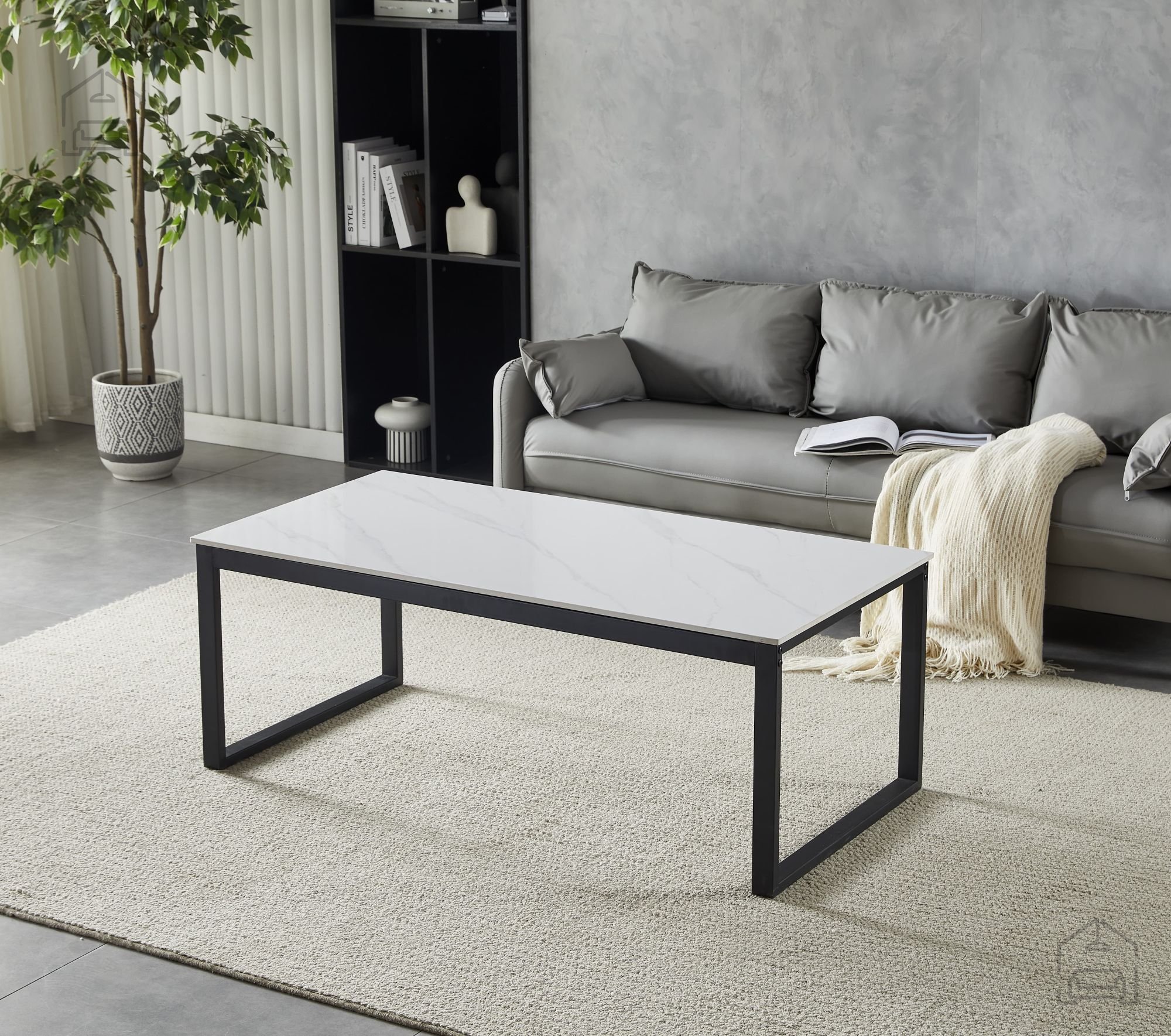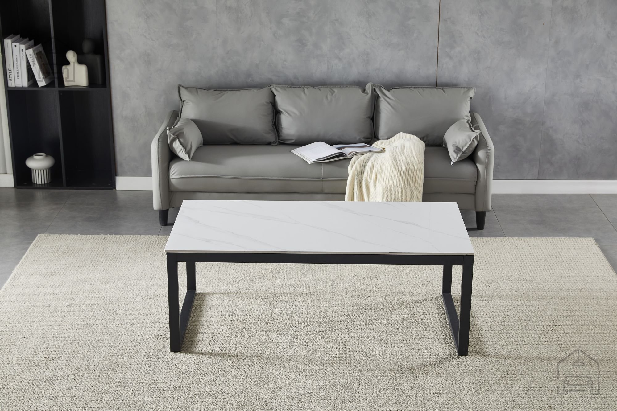 Dieser Couchtisch ist mit Präzision und durchdachter Verarbeitung entworfen. Die Tischplatte, 120x60 cm groß und 1,1 cm dick, ist aus Keramik gefertigt, die für ihre außergewöhnliche Beständigkeit gegen thermische Ausdehnung und Kratzer bekannt ist. Das bedeutet, dass Sie den täglichen Gebrauch unbesorgt genießen können, da der Tisch sein glänzendes Aussehen über die Zeit behält.