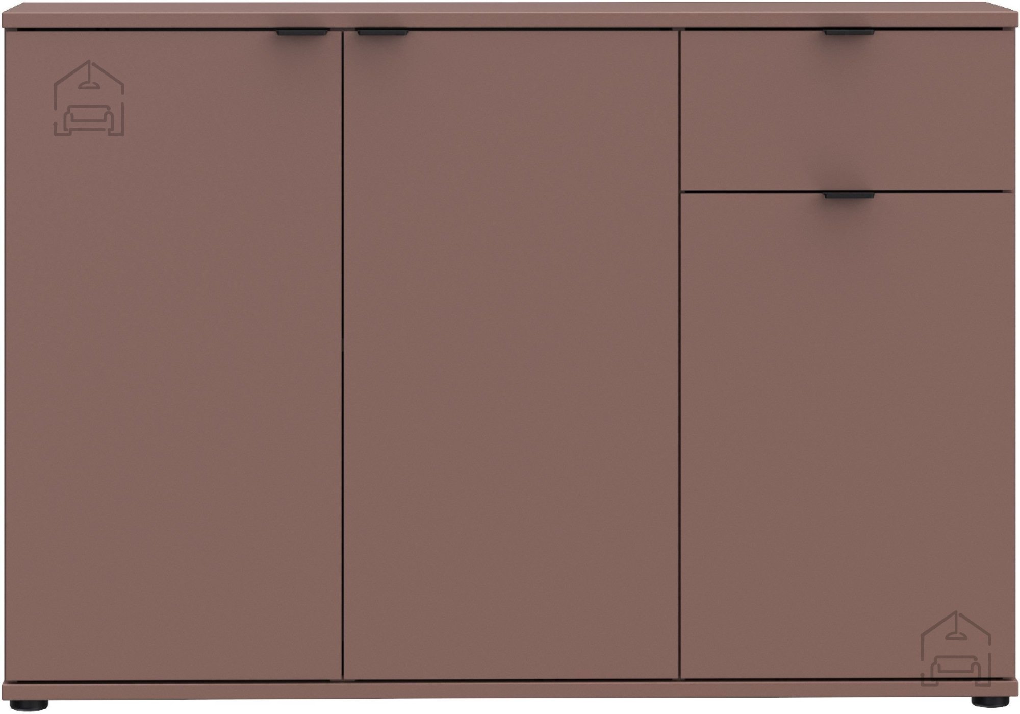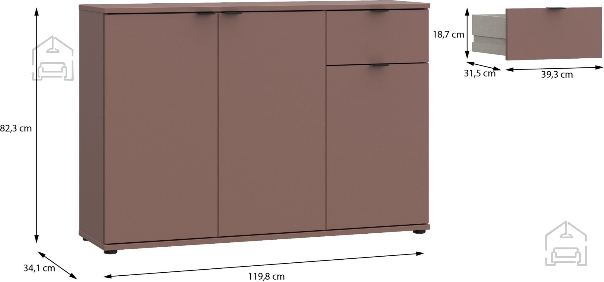 Die Kommode besteht aus Spanplatte, beschichtet mit Melamin, was eine einfache Reinigung und Pflege ermöglicht. Sie ist in einer attraktiven Terrakotta-Farbe erhältlich, die Wärme und Stil in jeden Raum bringt. Sie wird in der renommierten Fabrik Fola in Polen hergestellt, was hohe Qualität und Zuverlässigkeit gewährleistet.