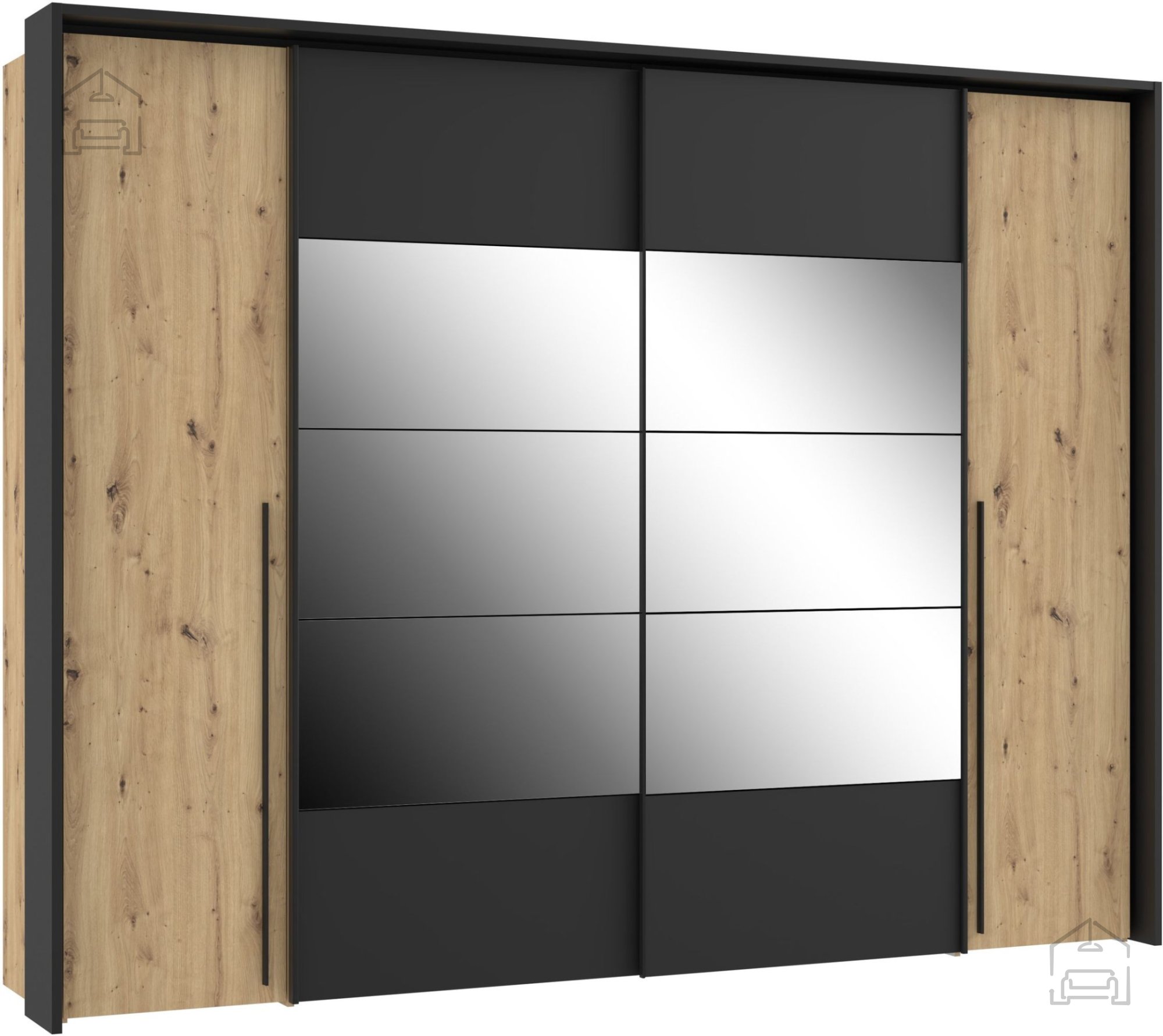 Wenn Sie nach einer idealen Lösung für die Aufbewahrung Ihrer Kleidung und Accessoires suchen, sind Sie hier genau richtig. Der Kleiderschrank Izo 82512, hergestellt in der renommierten Fabrik Fola in Polen, ist ein hochwertiges Möbelstück, das Ästhetik und praktische Nutzbarkeit vereint. Mit seinen beeindruckenden Maßen von 279,5 x 64 x 215 cm bietet dieser großzügige viertürige Schrank jede Menge Platz für Ihre persönlichen Dinge.