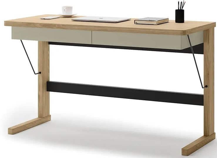 Hergestellt aus laminierten Spanplatten mit einer Stärke von 16 mm, 22 mm und 28 mm, vereint dieser Schreibtisch Widerstandsfähigkeit und elegantes Aussehen. Die geölte Eiche, die die Oberfläche bedeckt, sorgt nicht nur für außergewöhnliche Abriebfestigkeit, sondern verleiht Ihrer Arbeitsumgebung auch einen Hauch von Prestige und Wärme. Diese Eichenfarbe lässt sich mühelos mit verschiedenen Einrichtungsstilen kombinieren, von modern bis traditionell.