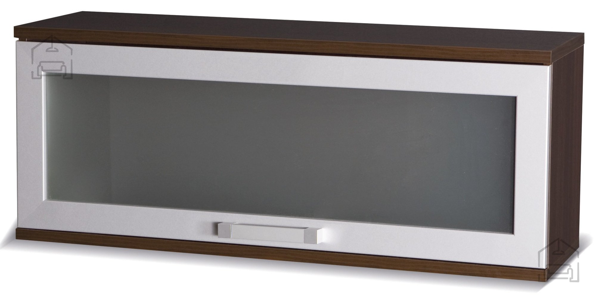 Die Vitrine ist mit MDF-Leisten in Silberfarbe veredelt, die einen Hauch von Modernität und Raffinesse verleihen. Milchglas erzeugt ein sanftes und angenehmes Umgebungslicht, das den Inhalt der Vitrine dezent präsentiert und gleichzeitig Privatsphäre bietet. Die Kombination aus Kastanie Wenge und silbernen Details verleiht der Vitrine ein elegantes und anspruchsvolles Aussehen, das sich harmonisch in verschiedene Einrichtungsstile einfügt.