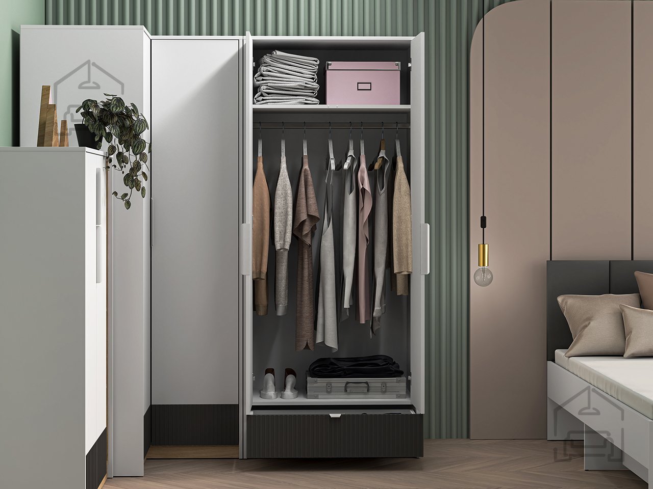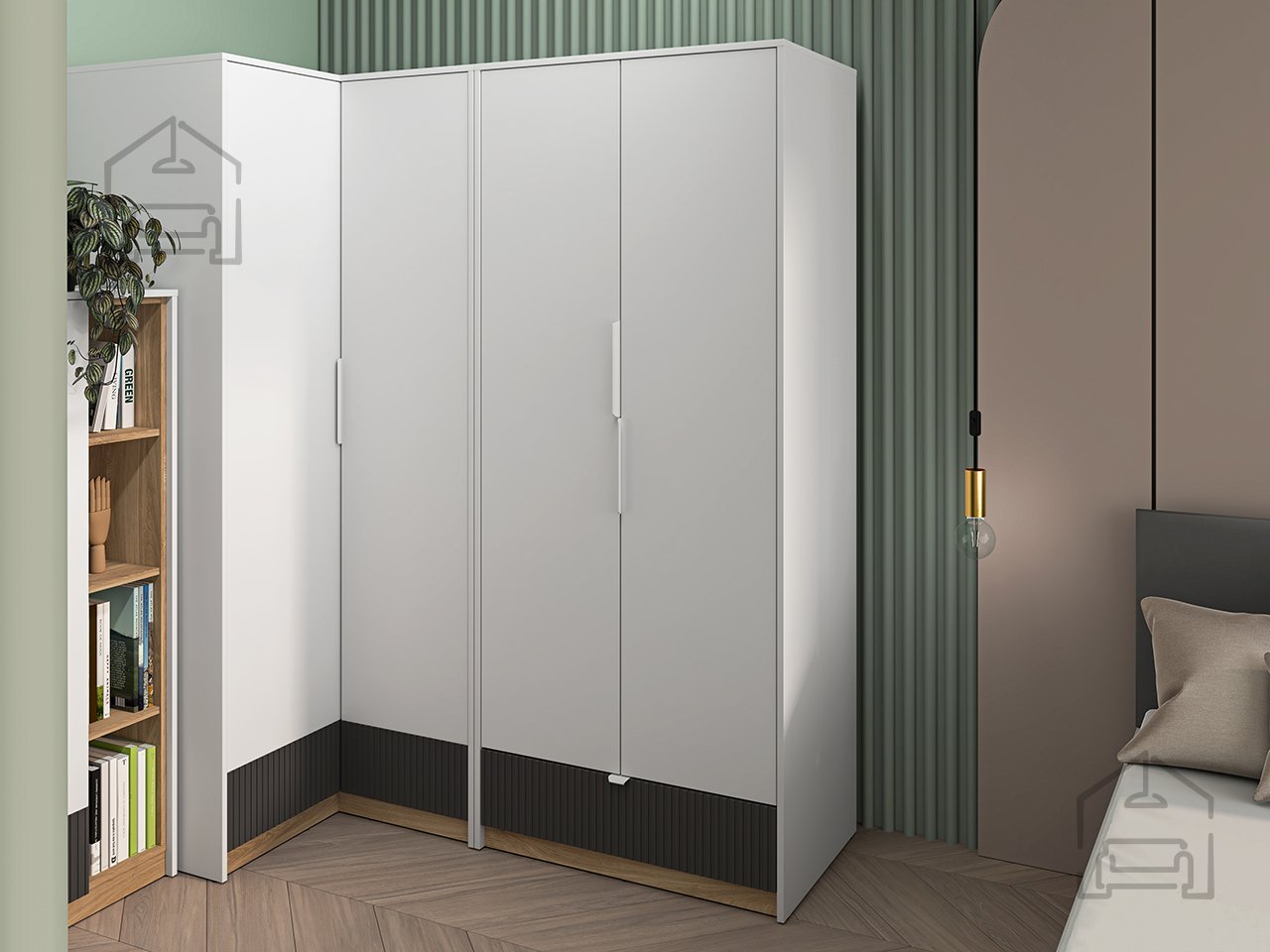 Wir präsentieren Ihnen den Kleiderschrank Turin 02, der mit seinem innovativen Design und seiner hochwertigen Verarbeitung eine perfekte Kombination aus Funktionalität und Eleganz in jedes Zuhause bringt. Dieser außergewöhnliche Schrank ist nicht nur ein Möbelstück, sondern ein Kunstwerk, das Ihren Wohnraum bereichern wird.