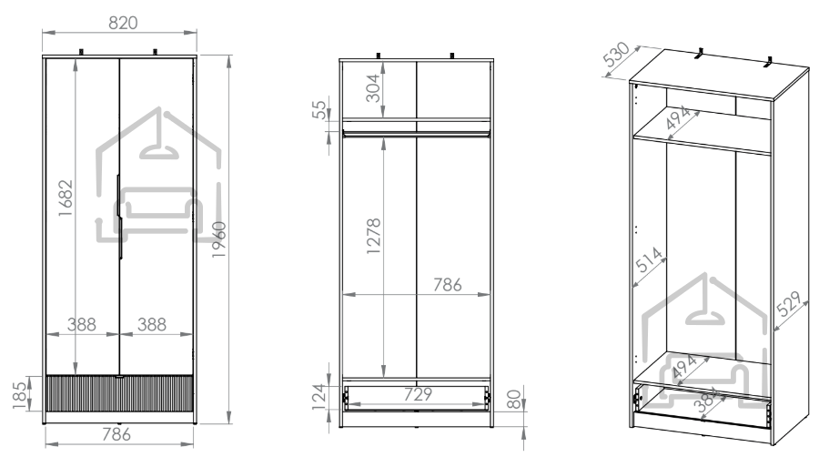 Mit den Maßen 82x53x196 cm ist der Kleiderschrank Turin 02 die ideale Wahl für jeden Raum, unabhängig von der Größe. Er ist aus hochwertigen Materialien wie MDF und laminierten Spanplatten gefertigt, was seine Langlebigkeit und Widerstandsfähigkeit gewährleistet.