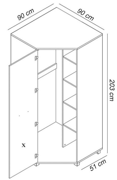 Wir präsentieren Ihnen den Eckkleiderschrank Maximus M34 in der edlen Farbe Kastanie Wenge, mit den Maßen 90-90/203/51 cm, die perfekte Wahl für jedes Zuhause, in dem Eleganz und Funktionalität an erster Stelle stehen. Dieser Schrank, hergestellt in der renommierten Fabrik Maridex in Polen, vereint hochwertige Materialien und ein durchdachtes Design, das Ihnen ermöglicht, Ihren Raum effizient zu organisieren und gleichzeitig einen Hauch modernen Designs in Ihr Schlafzimmer oder Ihren Flur zu bringen.