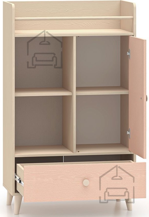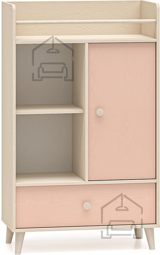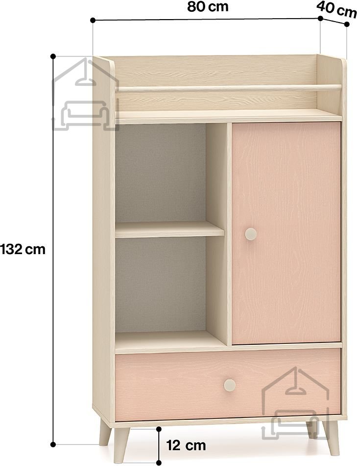 Einer der größten Vorteile des Regals Mevel 04 ist seine Farbkombination. Fronten im Farbton Millennial Pink bringen Frische und Modernität in jeden Raum, während der Korpus in der Farbe Desert Sand einen Hauch von Ruhe und Eleganz verleiht. Diese harmonische Mischung von Farben lässt sich leicht mit verschiedenen Einrichtungsstilen kombinieren, von minimalistisch bis klassisch.