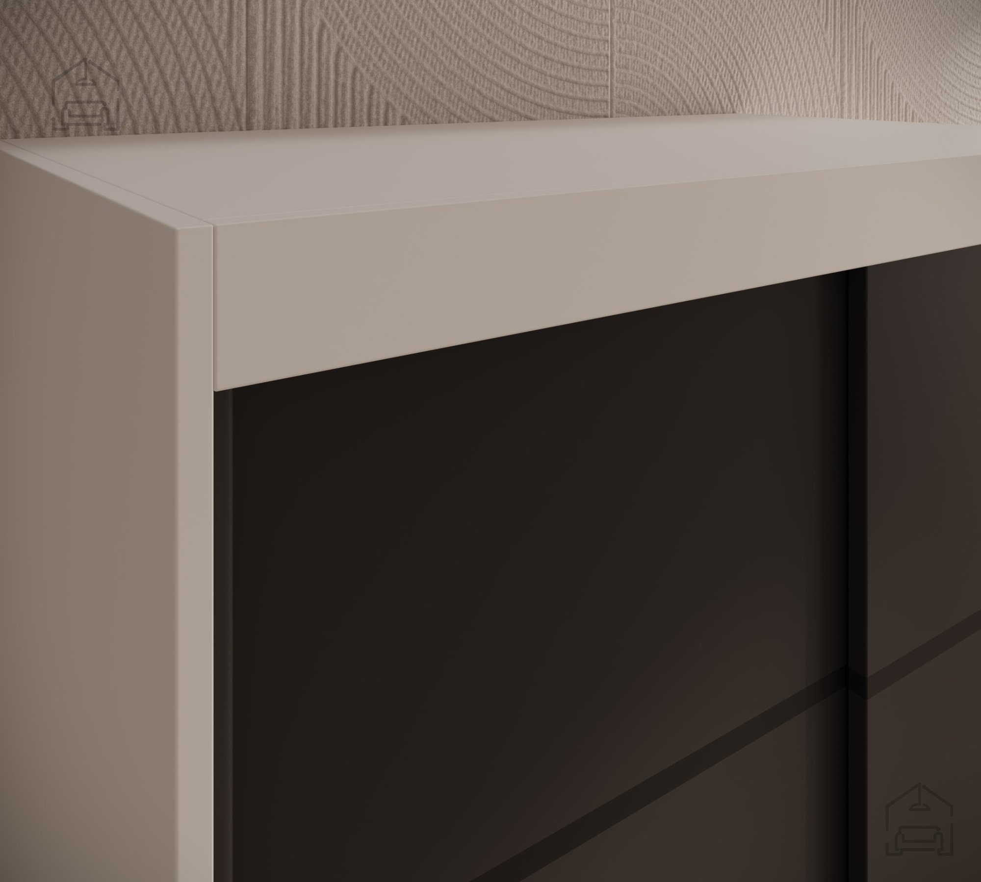 Eine elegante und zugleich praktische Lösung zur Aufbewahrung von Kleidung und Accessoires, die modernes Design mit Funktionalität vereint, ist der Kleiderschrank mit Schiebetüren Verto. Mit seinen Maßen von 100x58x200 cm passt er perfekt sowohl in kleinere Schlafzimmer als auch in größere Räume, in denen eine effiziente Raumnutzung wichtig ist. Die klassische Farbkombination Weiß/Schwarz harmoniert wunderbar mit verschiedenen Einrichtungsstilen – von minimalistisch bis modern.