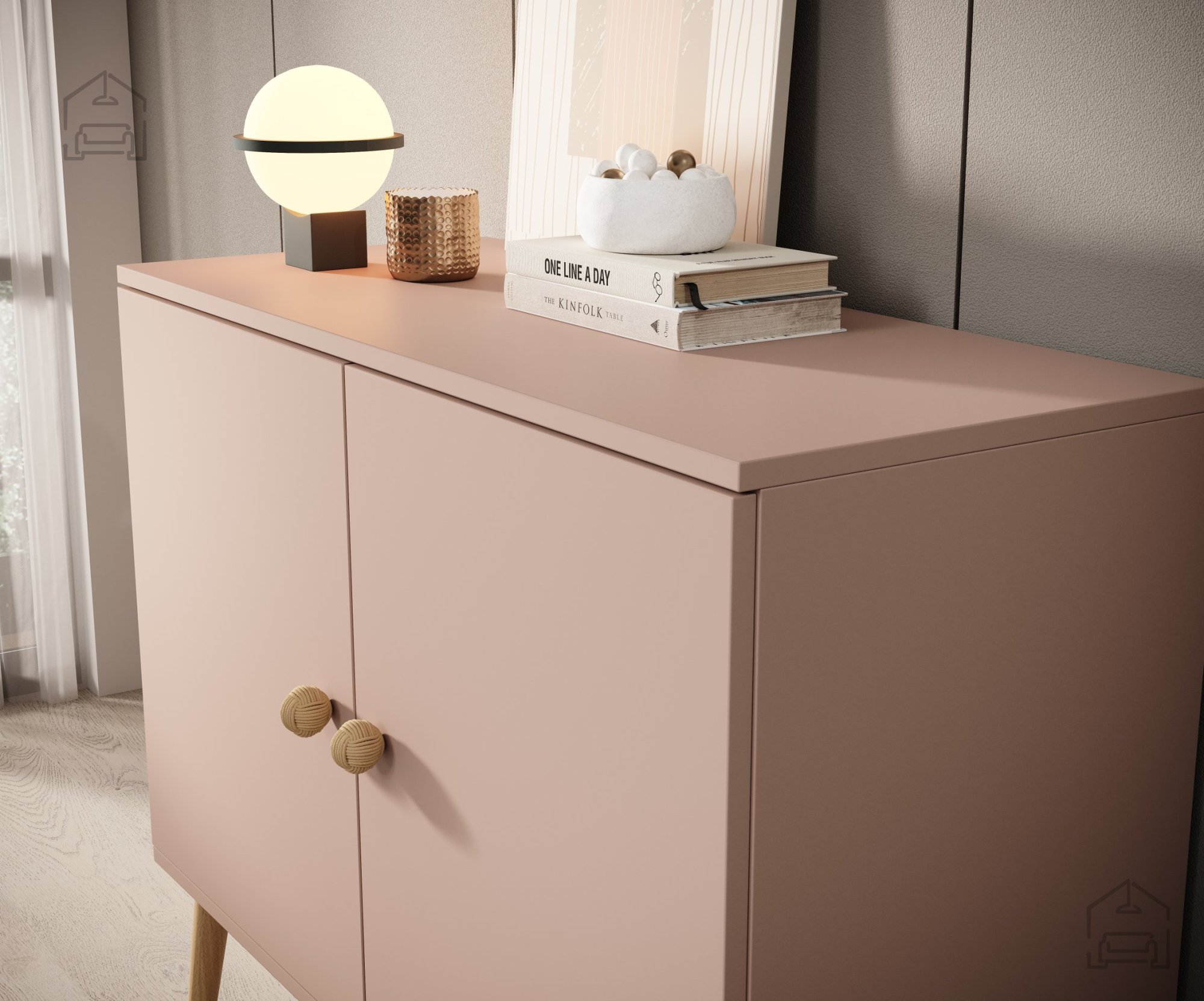 Die Kommode Deri überzeugt mit ihrem minimalistischen Design, das perfekt zu modernen Wohnkonzepten passt. Hohe Holzfüße sorgen für einen eleganten Look, während die Griffe aus Seil dem Möbelstück eine individuelle und natürliche Note geben. Diese Kommode verbindet traditionelle Elemente mit moderner Formensprache und lässt sich dadurch mühelos in verschiedenste Einrichtungsstile integrieren.