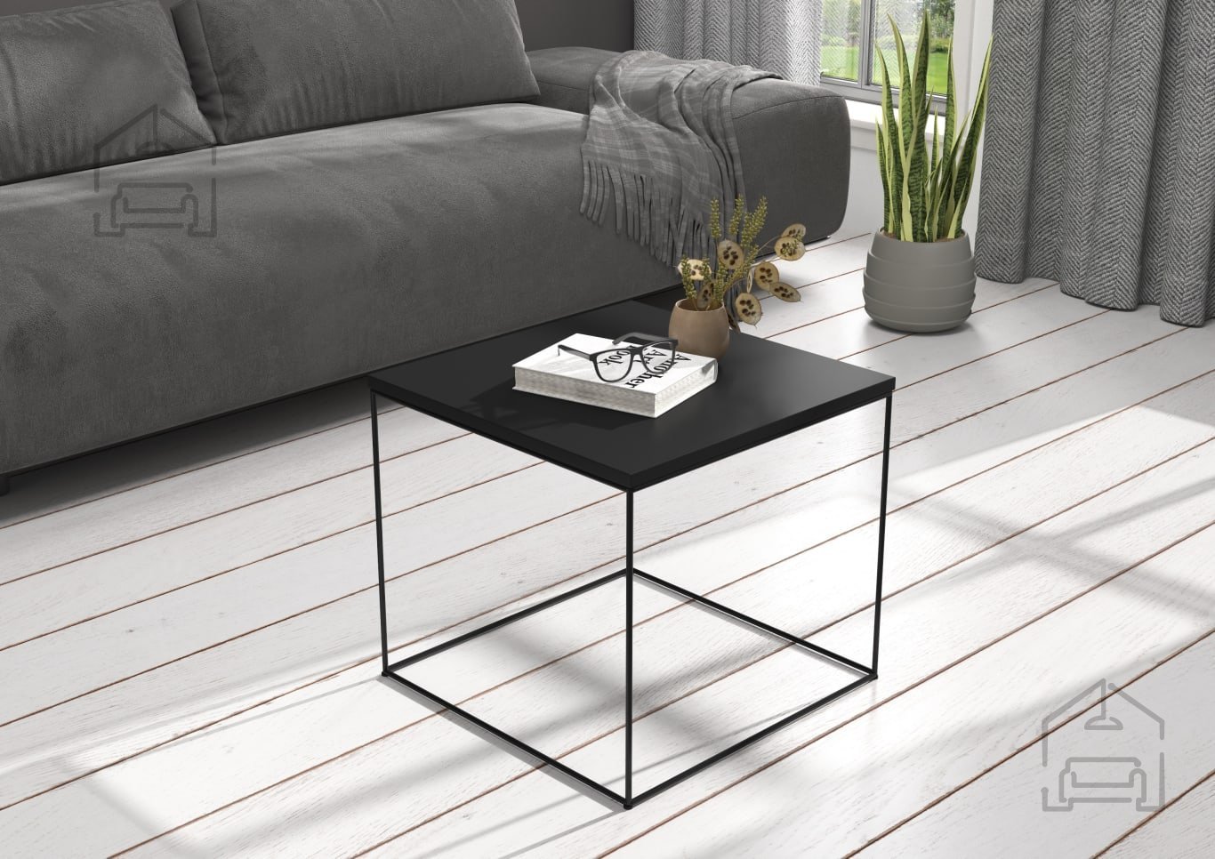 Der Couchtisch Elena mit den Maßen 50x50x45 cm vereint modernes Design und Funktionalität auf perfekte Weise. Sein markantes Schwarz verleiht jedem Zuhause einen Hauch von industriellem Chic. Gefertigt aus 18 mm starker, laminierter Platte überzeugt er durch Stabilität und Langlebigkeit, während die Metallbeine aus 8 mm Draht für sicheren Stand und einen eleganten Look sorgen.
