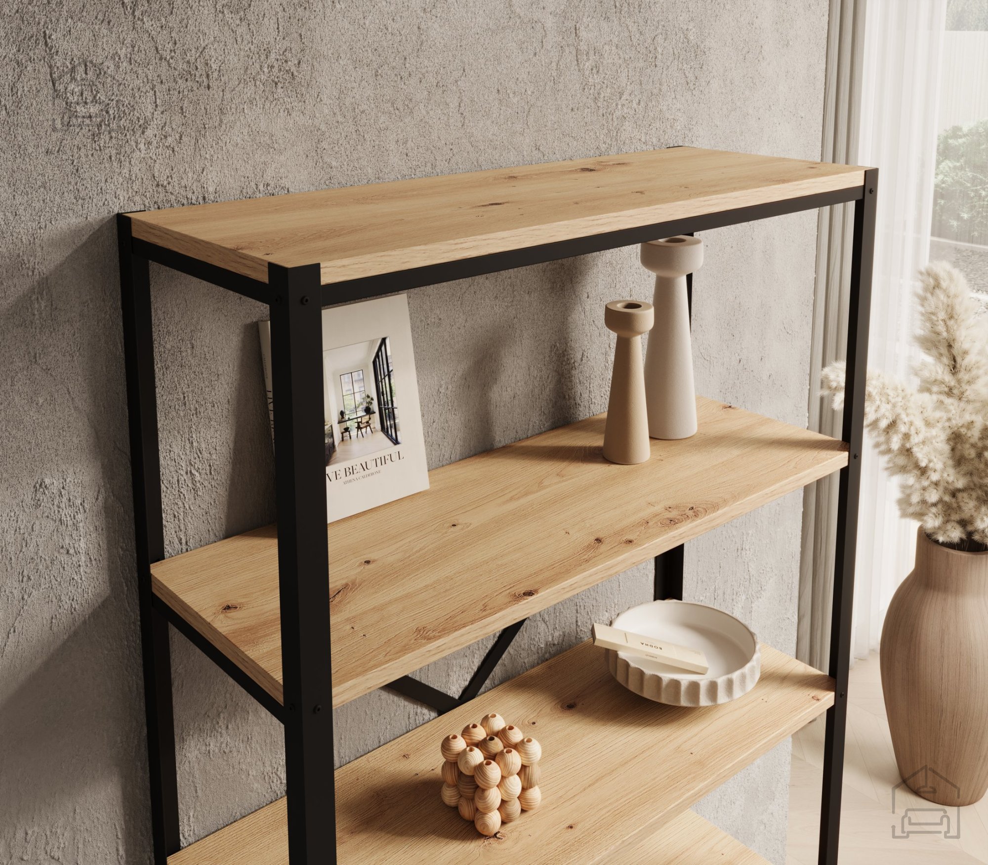 Egal, ob Sie Ihr Zuhause oder Ihr Büro besser organisieren möchten – das Regal Rene ist die ideale Lösung. Die neutrale Farbe in Artisan-Eiche harmoniert mit vielen Farbkonzepten und fügt sich nahtlos in jedes Ambiente ein. Es ist zudem perfekt für alle, die minimalistisches Design schätzen und dennoch ausreichend Platz für Bücher, Deko oder Büromaterial benötigen.