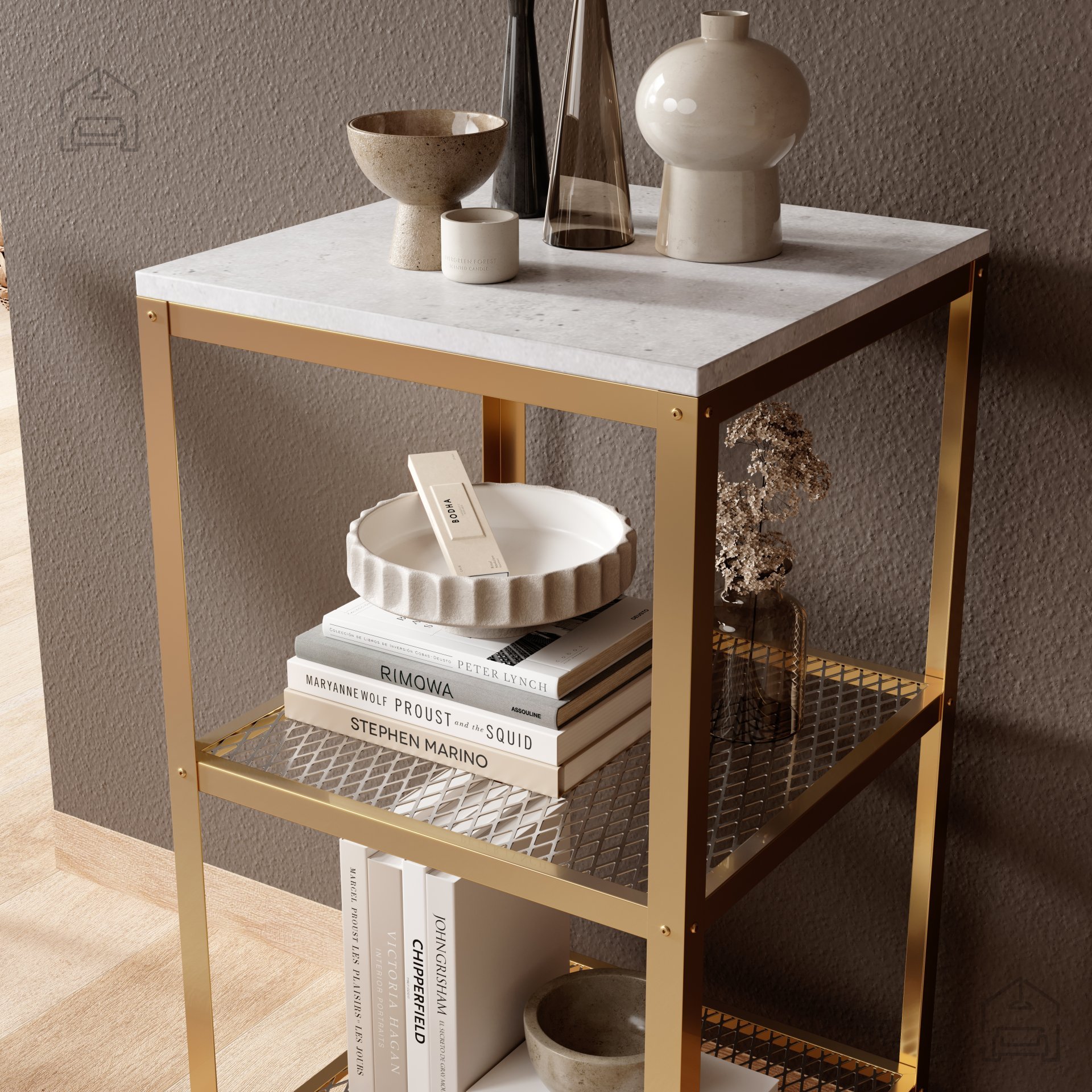 Das Regal Rolin ist eine Investition in Qualität und zeitlose Eleganz, die Ihnen viele Jahre Freude bereiten wird. Dank seiner Vielseitigkeit lässt es sich für unterschiedlichste Zwecke nutzen – ob zur Präsentation von Dekorationen und Büchern oder zur Aufbewahrung alltäglicher Gegenstände. Mit seinem schlichten, universellen Design ist es die ideale Wahl für alle, die eine praktische und zugleich ansprechende Lösung zur Raumorganisation suchen.