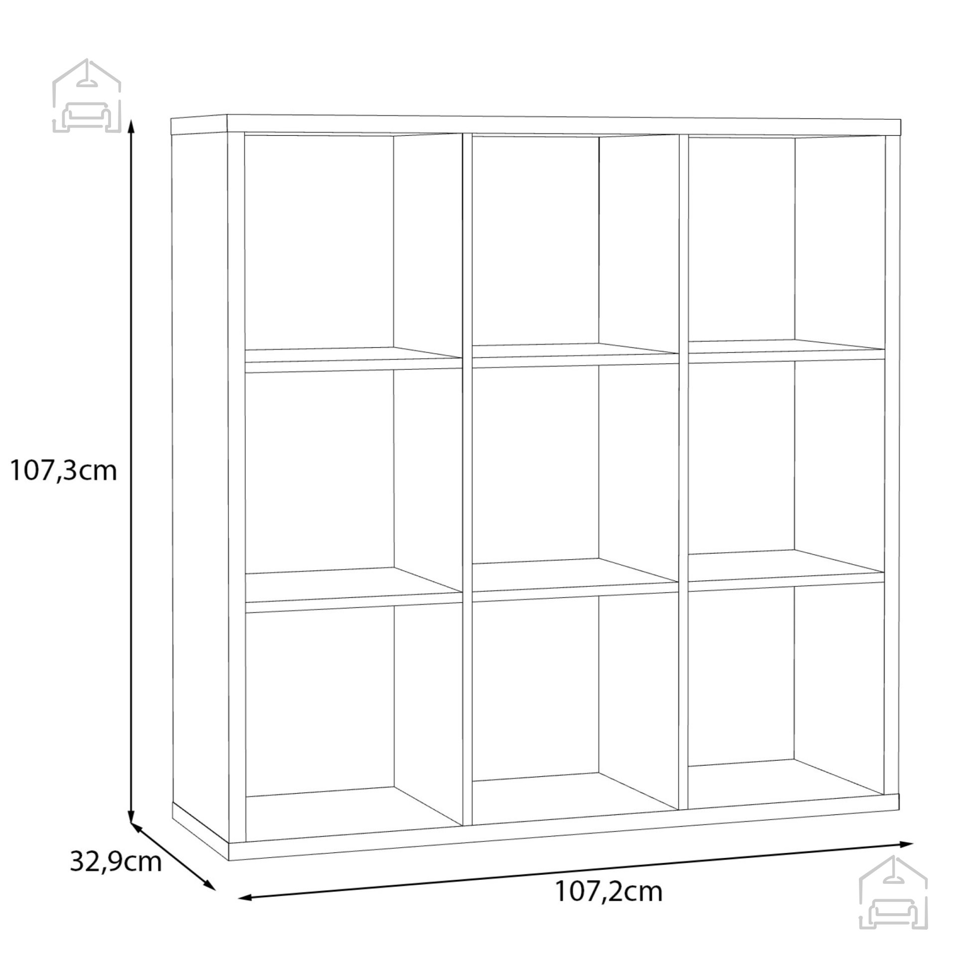 Das Regal Mauro 311 ist die perfekte Wahl für diejenigen, die eine Kombination aus Funktionalität und Stil suchen. Dieses große Regal mit offener Rückwand ist in reinem Weiß erhältlich, das sich nahtlos an verschiedene Innenräume anpasst, von modern bis klassisch. Mit seinen neun gleich großen Fächern bietet es ausreichend Platz zum Aufbewahren und Präsentieren Ihrer Lieblingsbücher, Dekorationsgegenstände oder anderer kleiner Dinge.