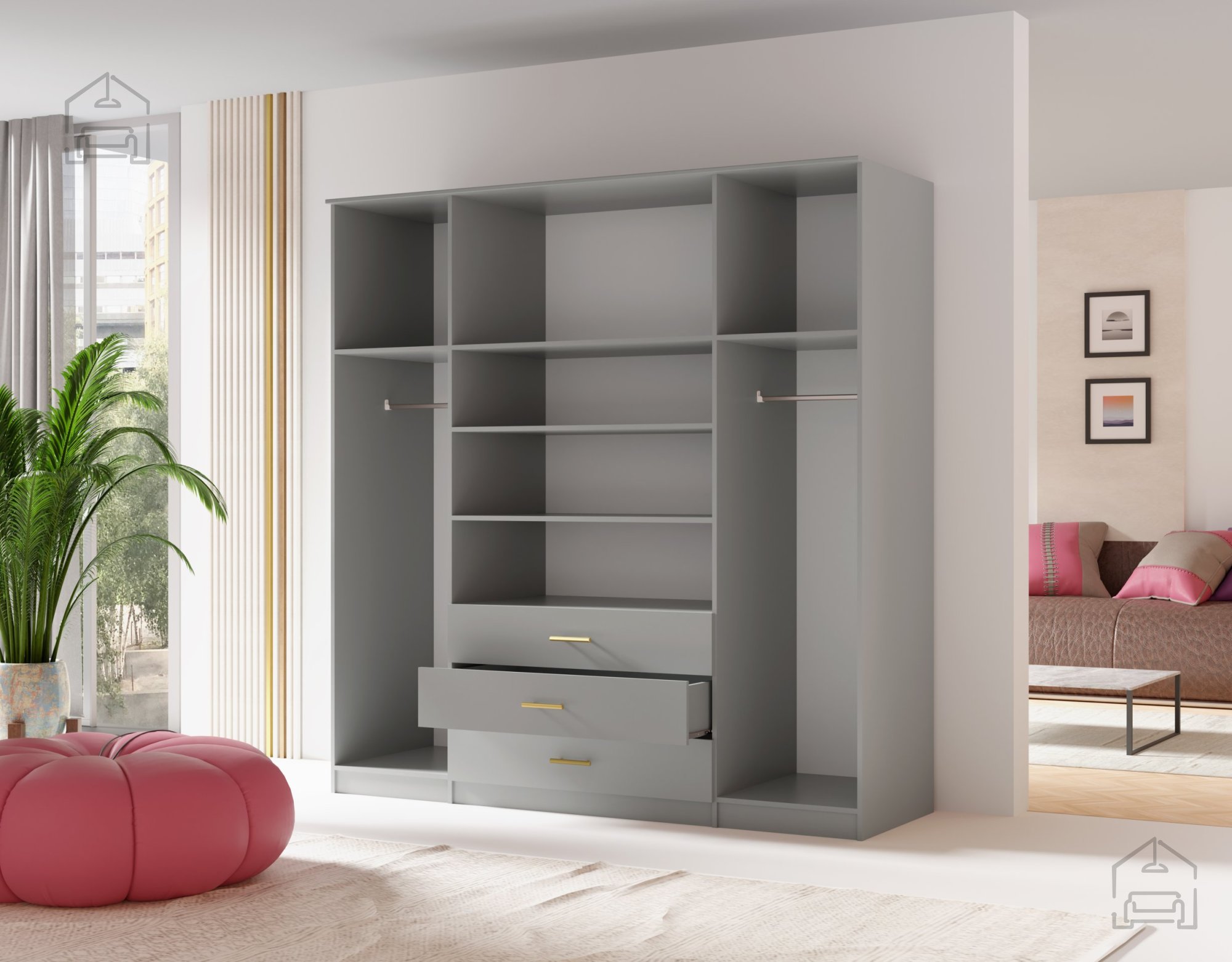 Ganz gleich, ob Sie zusätzlichen Stauraum benötigen oder das Aussehen Ihres Schlafzimmers auffrischen möchten, dieser Schrank ist eine hervorragende Lösung. Vertrauen Sie auf die Qualität und Ästhetik, die Maridex bietet, und genießen Sie die Praktikabilität und Schönheit, die der Kleiderschrank mit Spiegel 4D - Grau mit sich bringt.