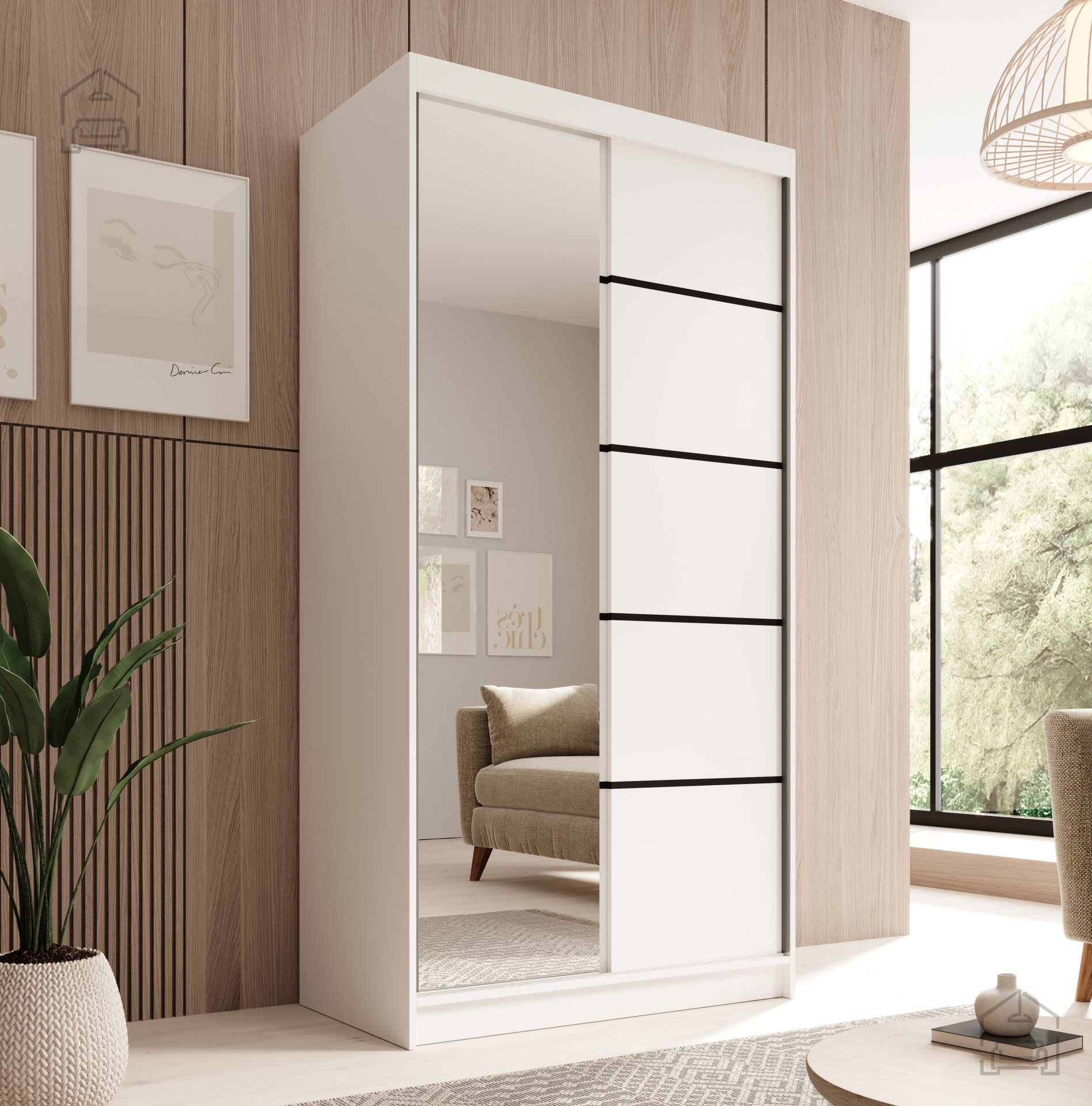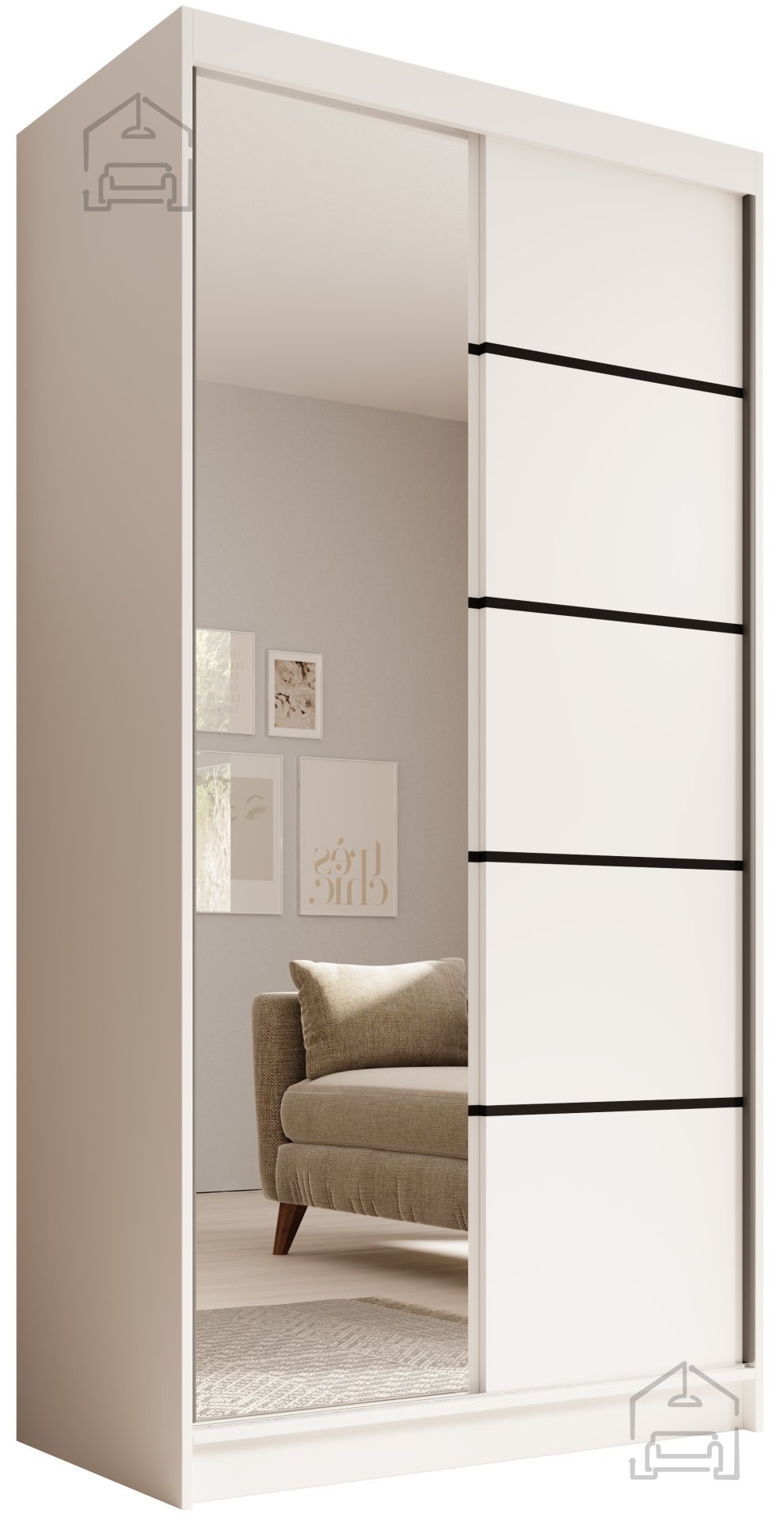 Der elegante und zugleich funktionale Kleiderschrank mit Schiebetüren ist die ideale Lösung für jedes Zuhause, in dem Platz kostbar ist, man aber trotzdem nicht auf modernes Design und praktische Nutzung verzichten möchte. Mit einer Breite von 100 cm und einer Höhe von 200 cm passt er perfekt auch in kleinere Räume, Schlafzimmer oder Vorzimmer. Trotz seiner kompakten Maße bietet er großzügigen Stauraum für Kleidung, Schuhe und Accessoires.