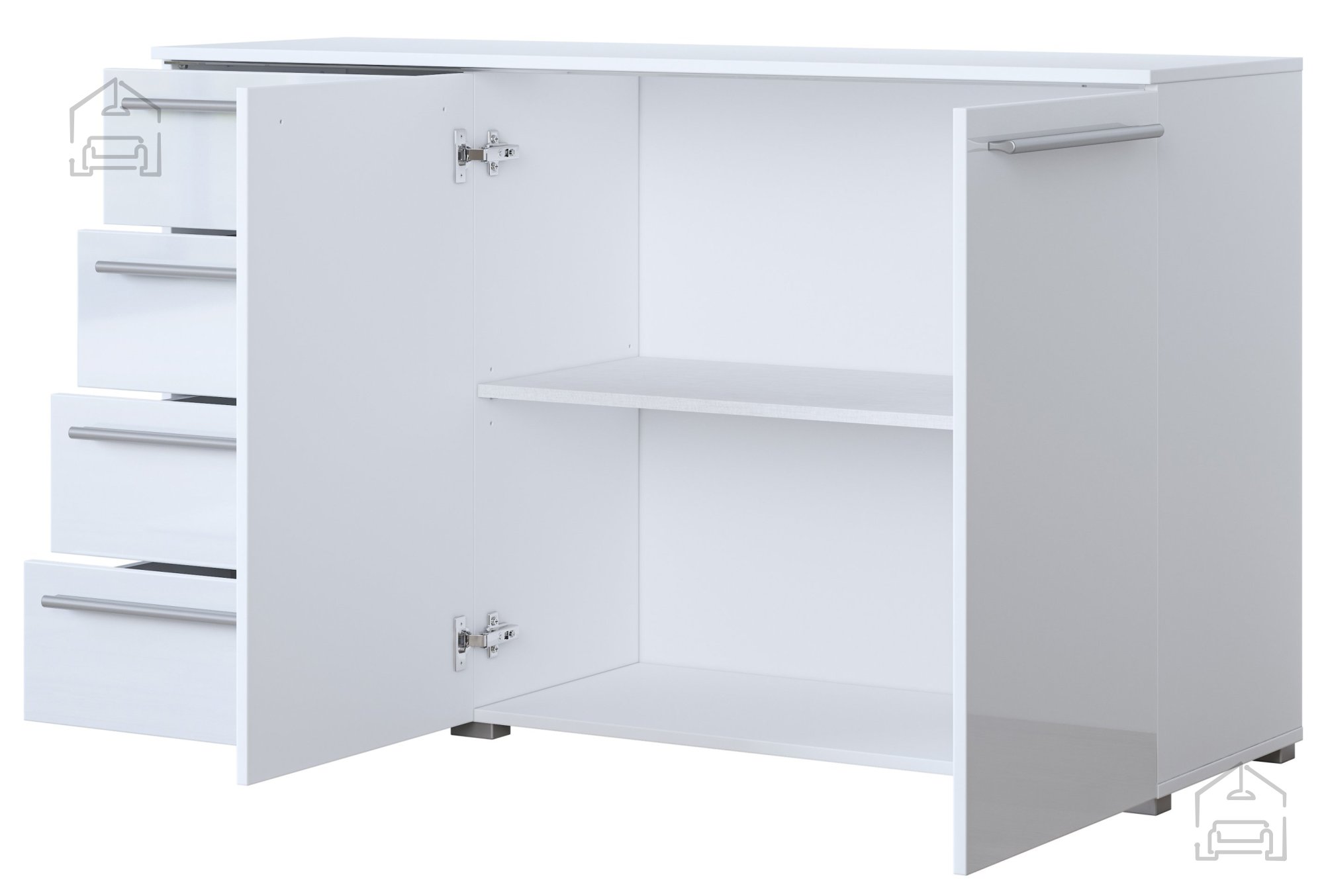Bringen Sie einen Hauch moderner Eleganz in Ihr Zuhause mit der Kommode India S in Weiß, die minimalistisches Design mit hoher Funktionalität vereint. Gefertigt in der renommierten Fabrik Helvetia Meble in Polen, überzeugt diese Kommode nicht nur durch ihre ansprechende Optik, sondern auch durch ihre praktische Seite.
