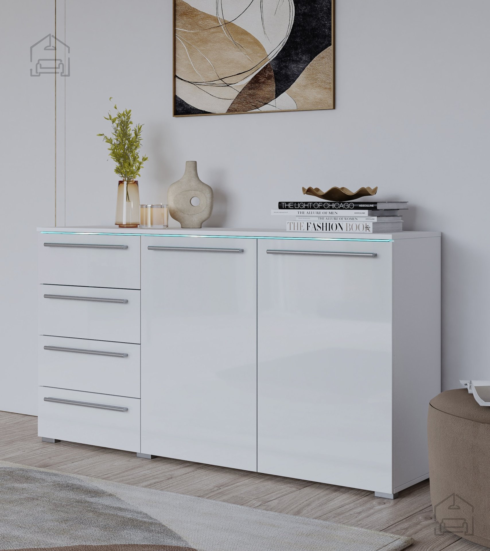 Ein besonderes Highlight dieser Kommode ist ihre durchdachte Funktionalität: Sie verfügt über zwei Türen und vier Schubladen und bietet damit reichlich Stauraum für persönliche Gegenstände. Darüber hinaus ist sie mit einer RGB-Beleuchtung ausgestattet, die je nach Stimmung oder Anlass unterschiedliche Lichtstimmungen erzeugt – ein moderner Akzent für Ihr Zuhause.