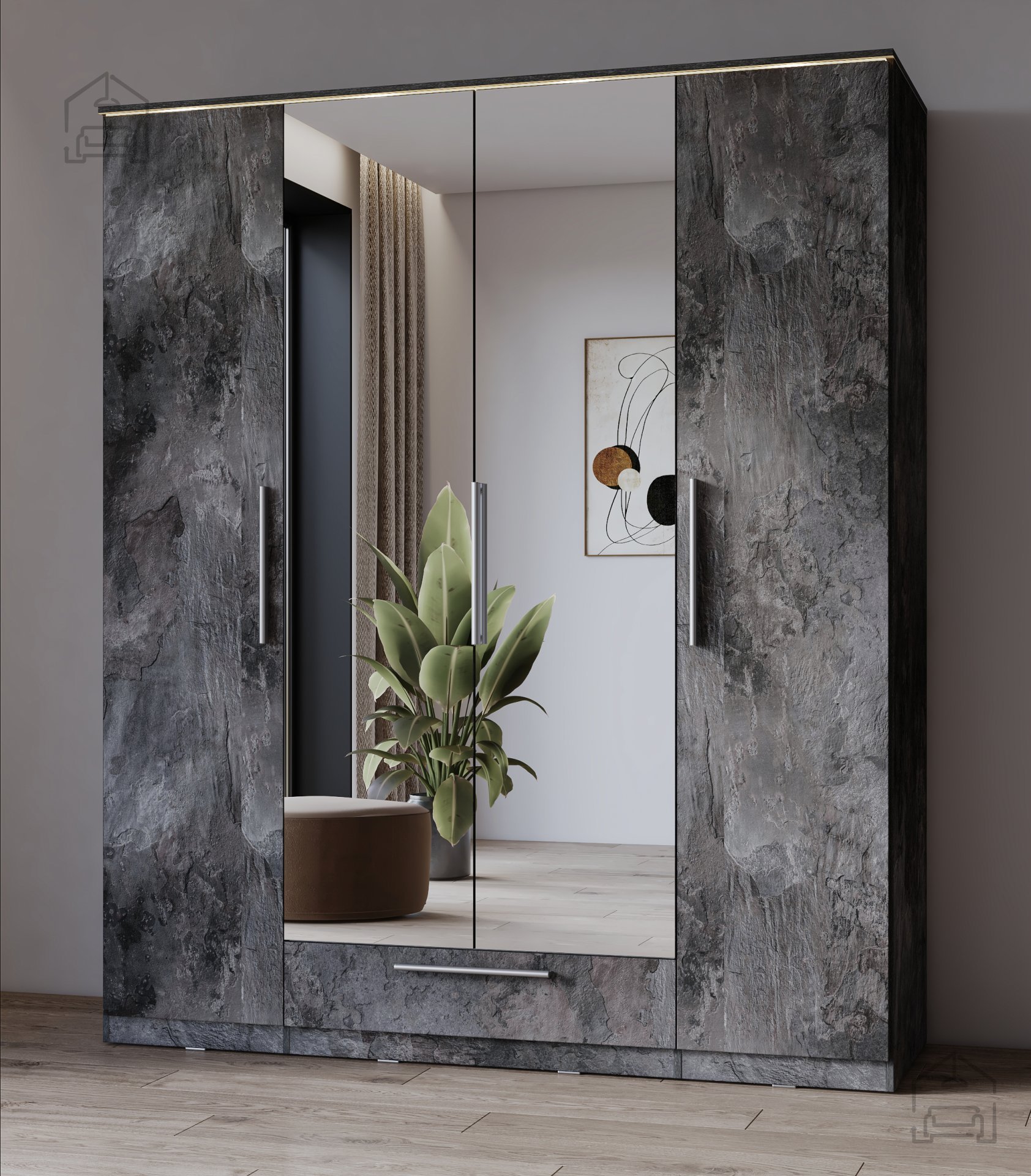 Der Kleiderschrank India S in Schieferoptik ist mehr als nur ein Möbelstück – er ist eine Investition in Stil und Funktionalität. Ob Sie Ihr Schlafzimmer neu gestalten oder ein neues Zuhause einrichten, dieser Schrank begleitet Sie zuverlässig und verbindet Eleganz mit praktischer Nutzung. Wenn Sie einen Kleiderschrank suchen, der auffällt und gleichzeitig durchdacht ist, ist das Modell India S die perfekte Wahl.