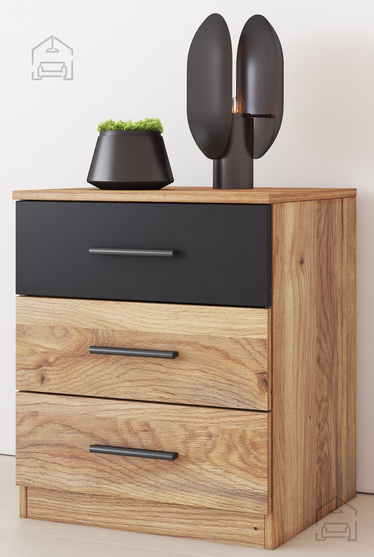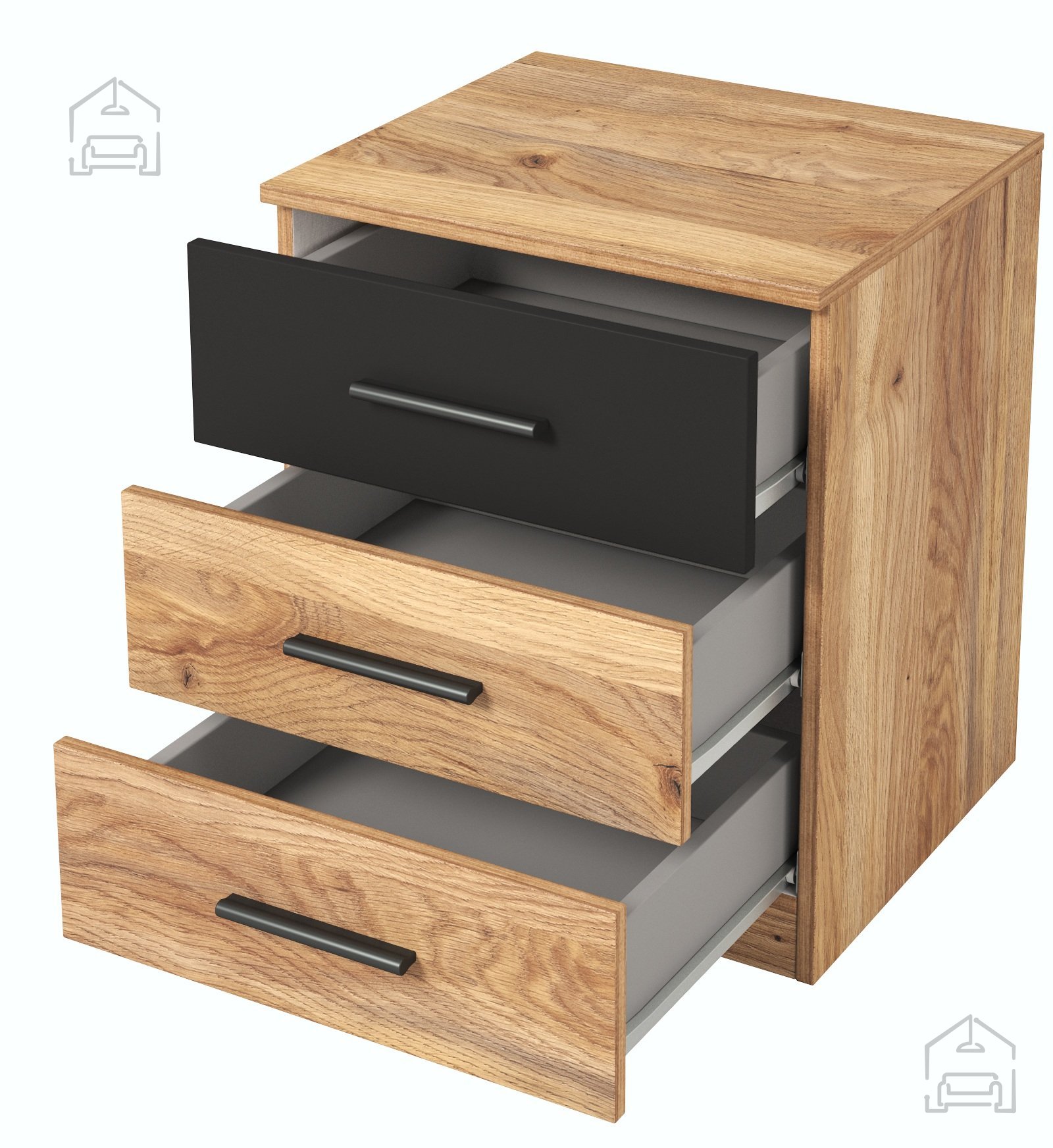 Das Nachtkästchen Beta – Mauvella Eiche/Schwarz ist weit mehr als nur ein Möbelstück; es ist ein stilvolles Statement, das Ihren persönlichen Geschmack widerspiegelt. Damit schaffen Sie ein aufgeräumtes und ansprechendes Schlafzimmerambiente, das Ihre Individualität und Bedürfnisse perfekt zum Ausdruck bringt. Durch die hochwertige Verarbeitung, das ansprechende Design und die praktische Nutzung ist dieses Nachtkästchen eine hervorragende Wahl für alle, die Wert auf Stil und Funktion legen.