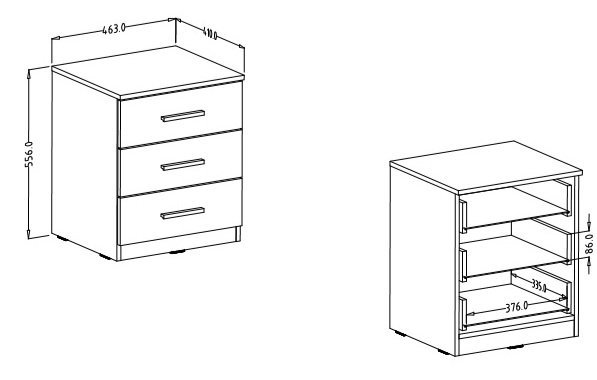 Gefertigt aus hochwertiger Möbelplatte misst das Nachtkästchen 46x41x56 cm – genau die richtige Größe für Ihr Schlafzimmer. Die ABS-Kanten sorgen für zusätzliche Stabilität und Schutz vor täglicher Abnutzung, damit dieses Möbelstück über viele Jahre hinweg schön und funktional bleibt.