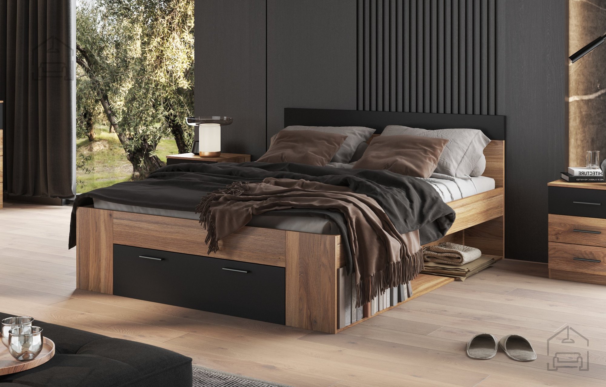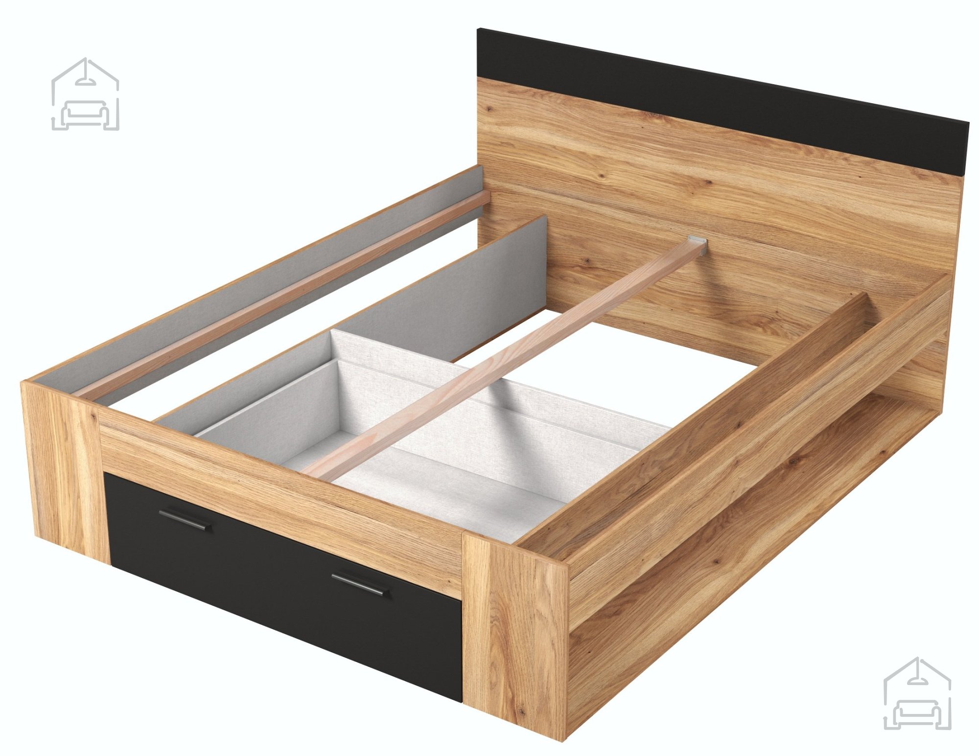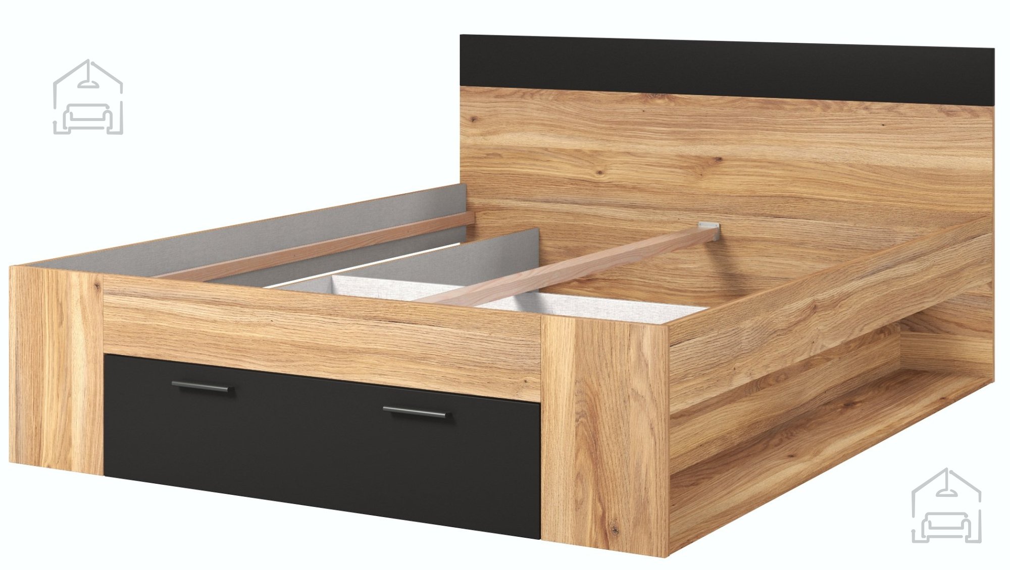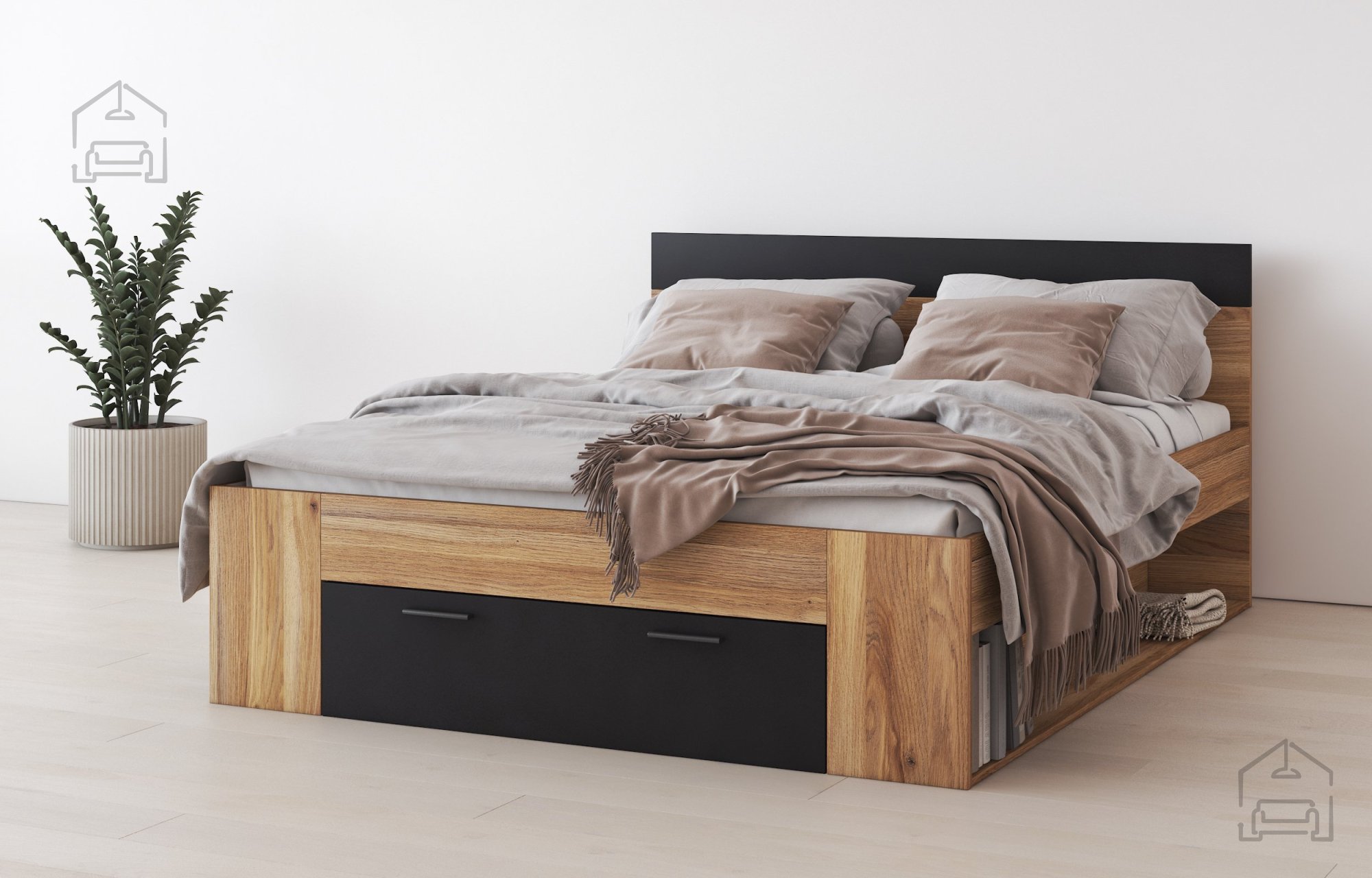 Wir präsentieren Ihnen das Bett Beta, das stilvolles Design und praktische Nutzung perfekt vereint und Ihrem Schlafzimmer einen Hauch von Eleganz und Modernität verleiht. Mit den Maßen 166x218x92 cm setzt dieses Bett neue Maßstäbe in Sachen Ästhetik und Funktionalität für zeitgemäßes Wohnen. Es besteht aus hochwertiger Möbelplatte mit ABS-Kanten, was für Stabilität und eine lange Lebensdauer sorgt.