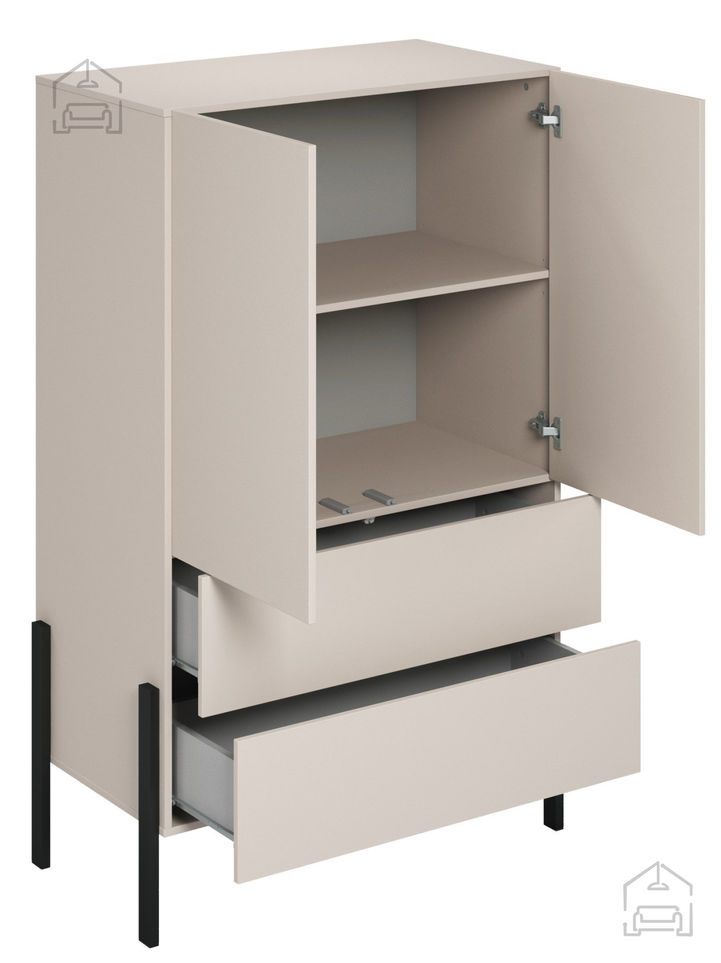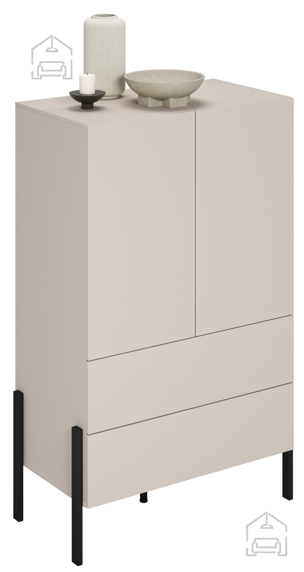 Bringen Sie einen Hauch von Eleganz und Funktionalität in Ihr Zuhause mit unserer außergewöhnlichen Kommode Jukon S. Dieses sorgfältig gestaltete Möbelstück, gefertigt in der renommierten Fabrik Helvetia meble in Polen, vereint modernes Design mit hoher Funktionalität und wertet jeden Raum optisch auf. Mit ihrem edlen Farbton in Cashmere ist diese Kommode die ideale Kombination aus Stauraum und Dekoration.