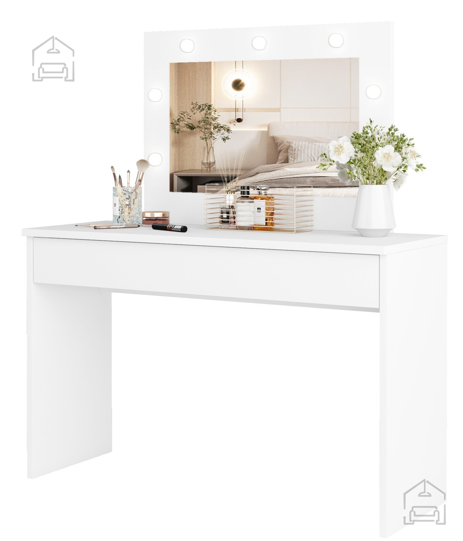 Entdecken Sie die perfekte Verbindung von Stil und Praktikabilität mit unserem Schminktisch Eva – Weiß – 2497NX49. Dieses wunderschöne Möbelstück ist nicht nur ein echter Blickfang, sondern auch äußerst funktional – entwickelt für moderne Frauen, die sowohl Design als auch Zweckmäßigkeit schätzen. Mit seinen Maßen von 118x42x135 cm passt er ideal in jedes Zuhause, das sich einen Hauch von Eleganz wünscht.