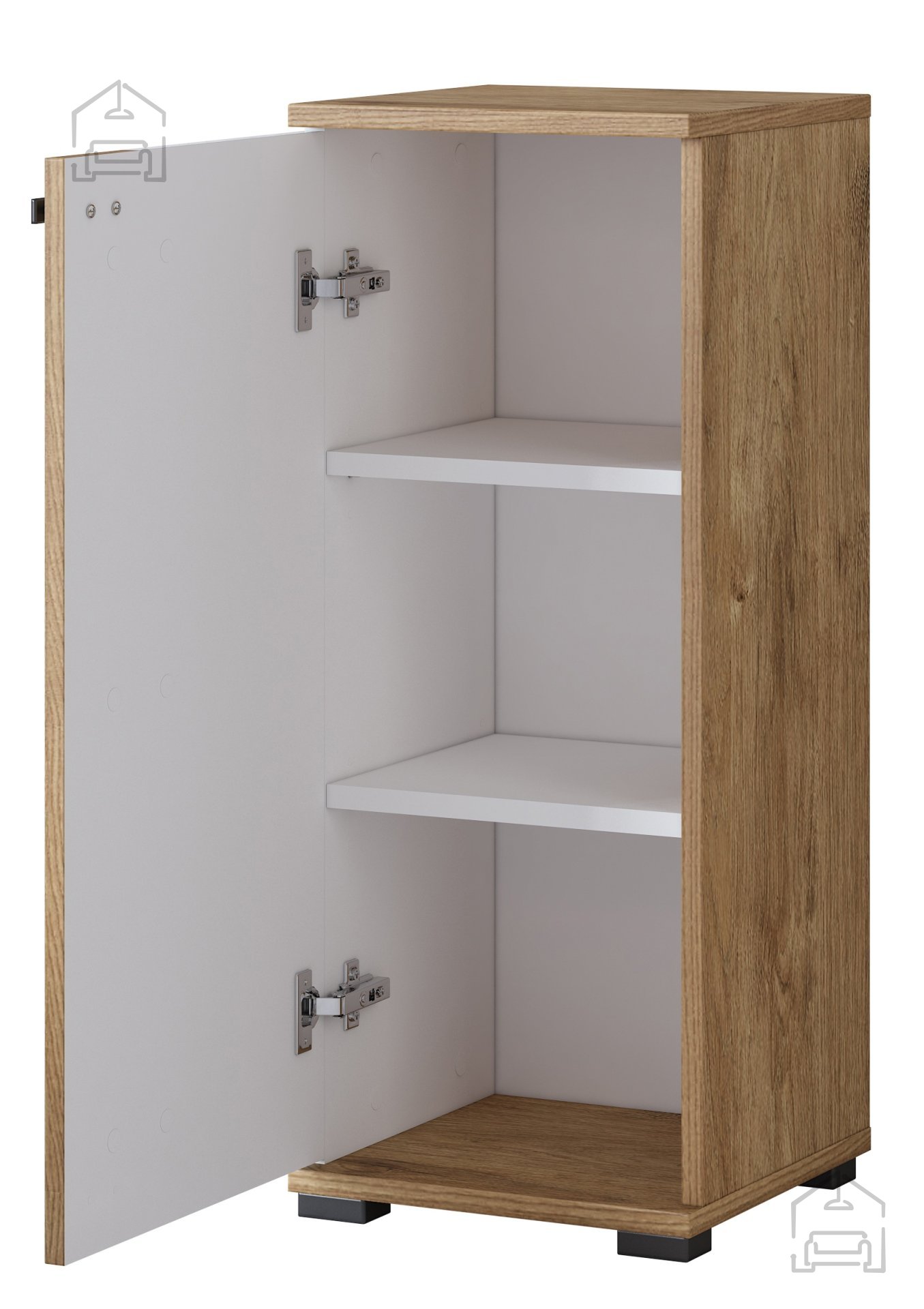 Praktisch im Alltag: Der Fargo-Schrank ist mit einer Tür ausgestattet und ermöglicht dadurch eine einfache Aufbewahrung und Organisation Ihrer Gegenstände. Dank seiner kompakten Größe findet er auch in kleineren Räumen Platz, ohne an Funktionalität einzubüßen.