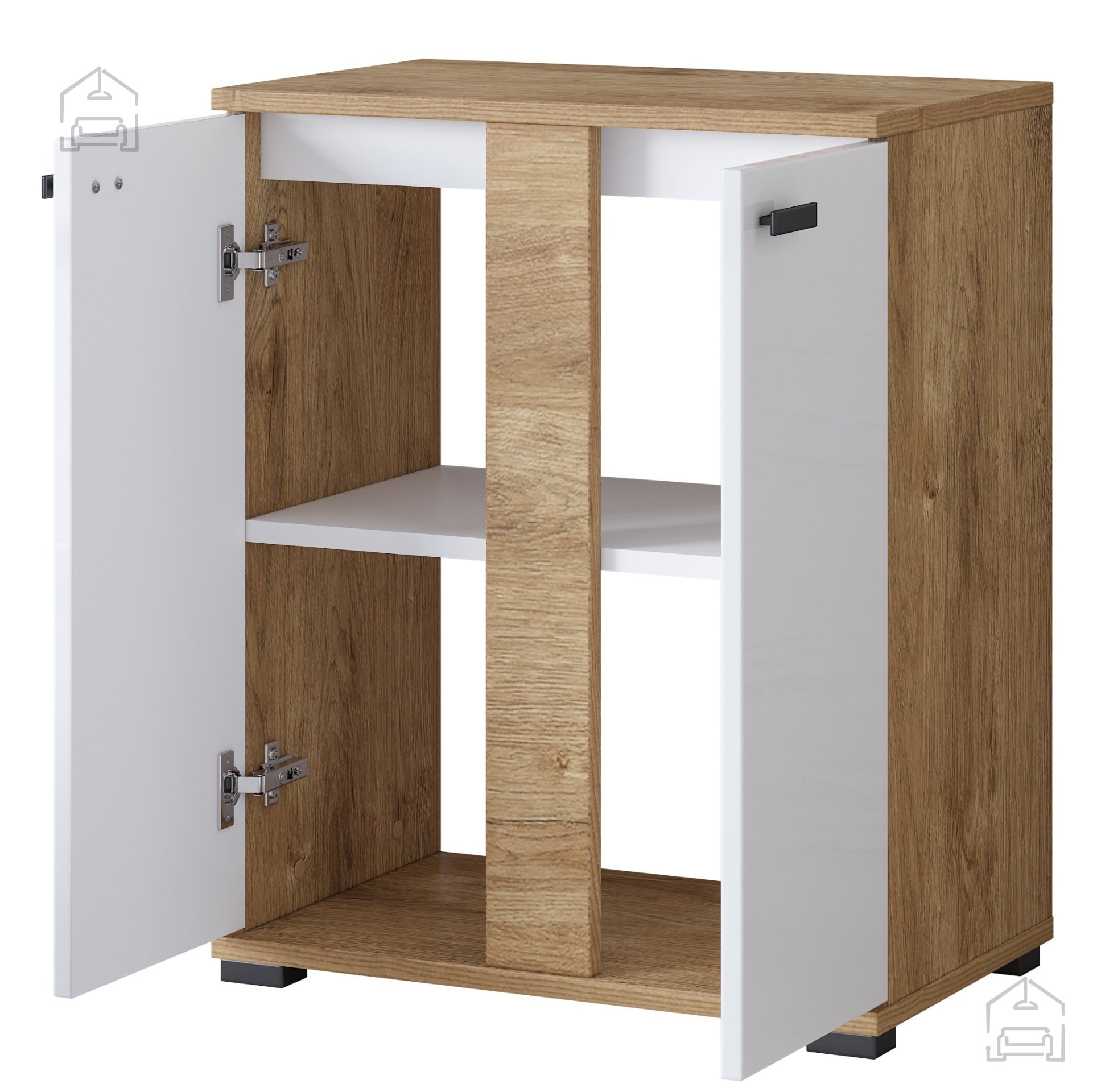 Die Maße von 61x34x74 cm sind ideal gewählt, um den Raum unter dem Waschbecken optimal zu nutzen. Die zweiflügelige Konstruktion ermöglicht einen bequemen Zugriff auf alle aufbewahrten Utensilien – egal ob Reinigungsmittel, Handtücher oder andere Badaccessoires. So bleibt Ihr Badezimmer stets ordentlich und funktional.