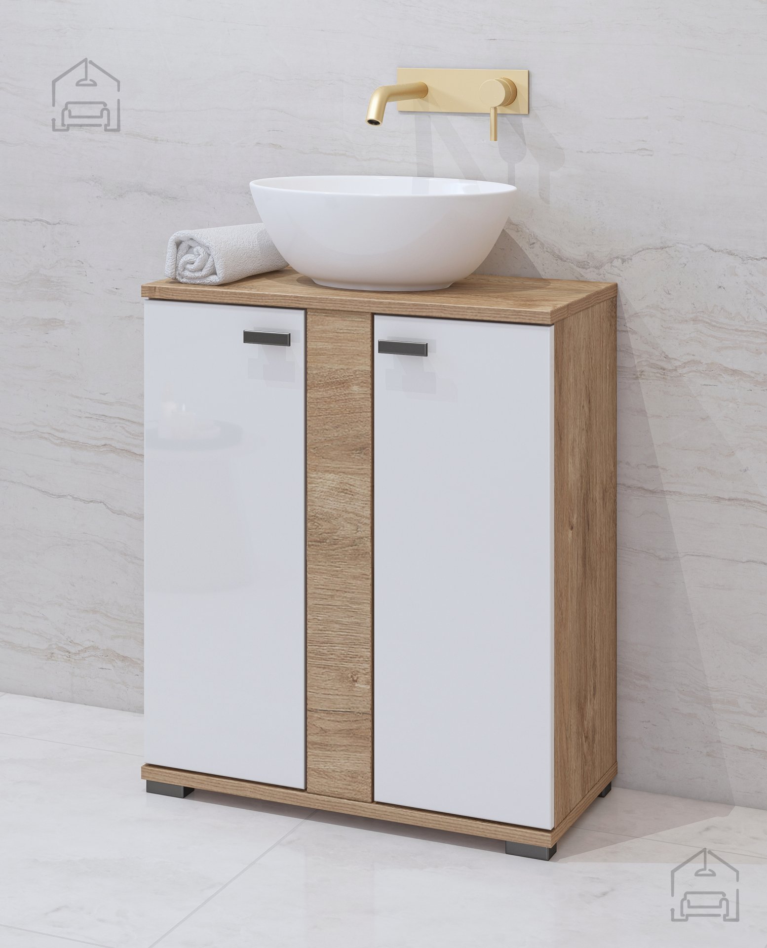 Egal, ob Sie Ihr gesamtes Badezimmer renovieren oder einfach nur den Look und die Funktionalität verbessern möchten – der zweittürige Waschbeckenunterschrank Fargo - 308HNL47 ist die ideale Wahl. Vertrauen Sie Ihrem Gespür für Stil und Praktikabilität und entscheiden Sie sich für ein Möbelstück, das Ihrem Zuhause echten Mehrwert verleiht.