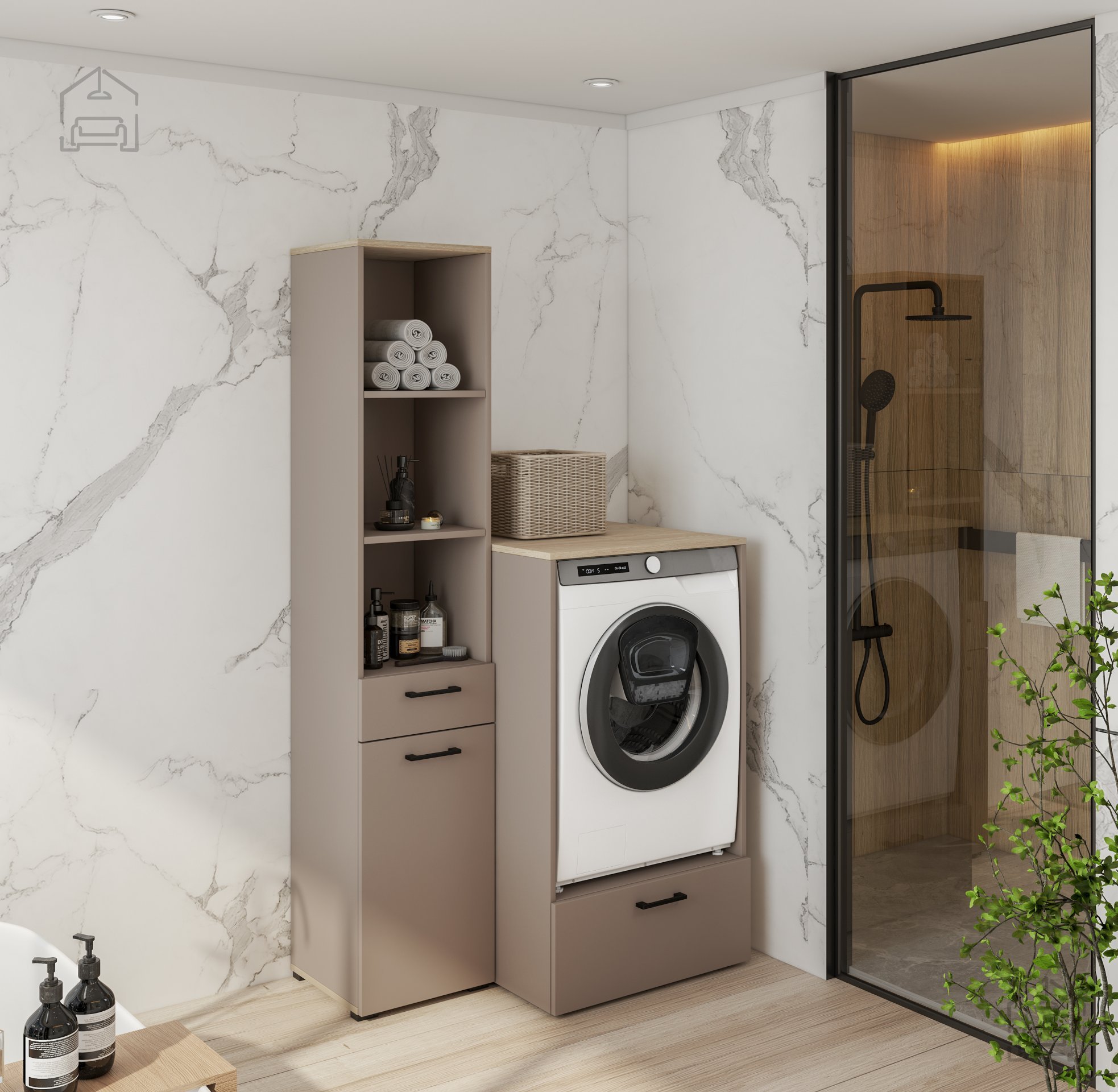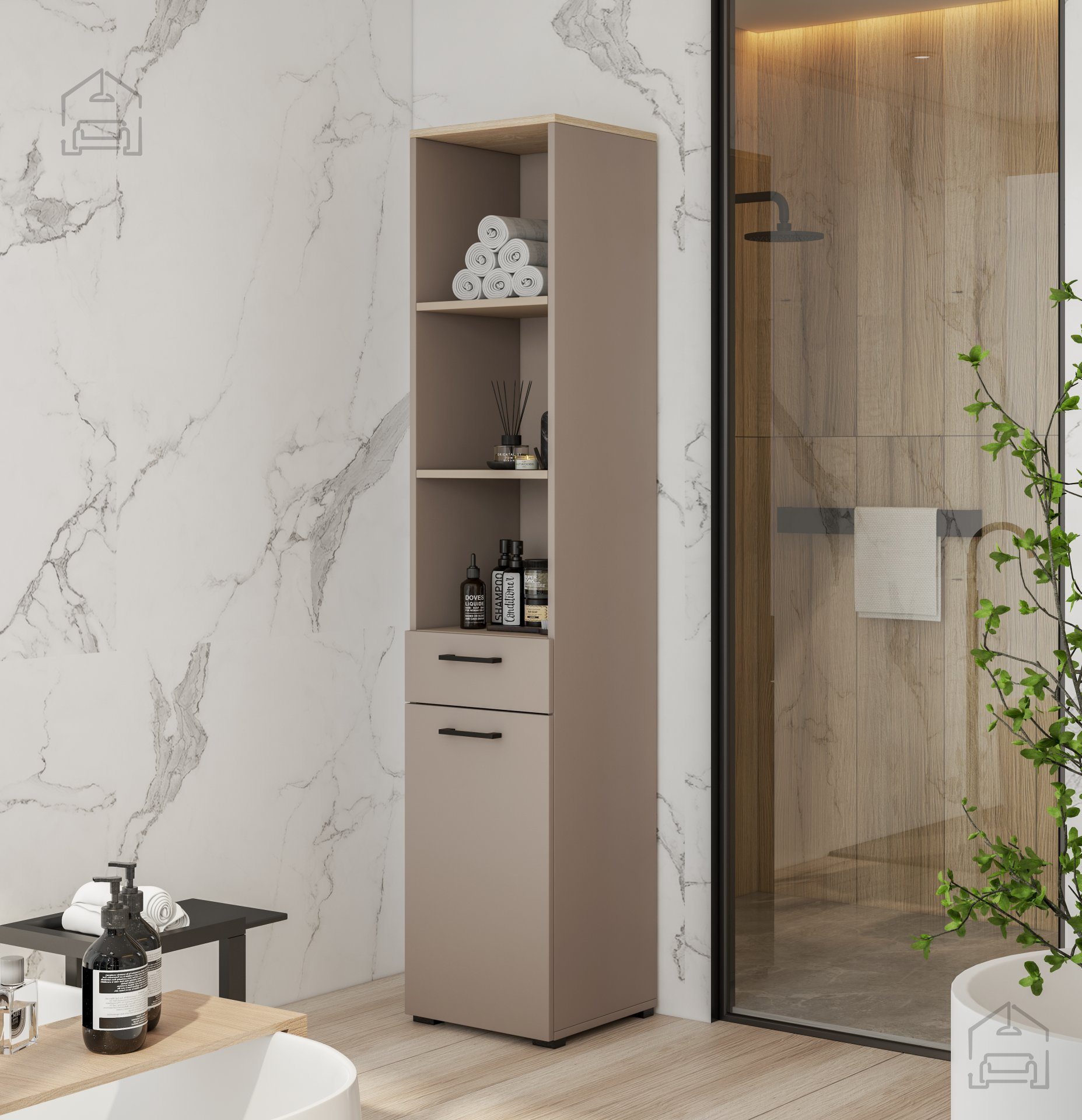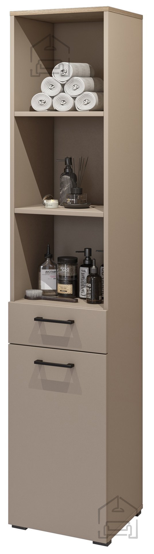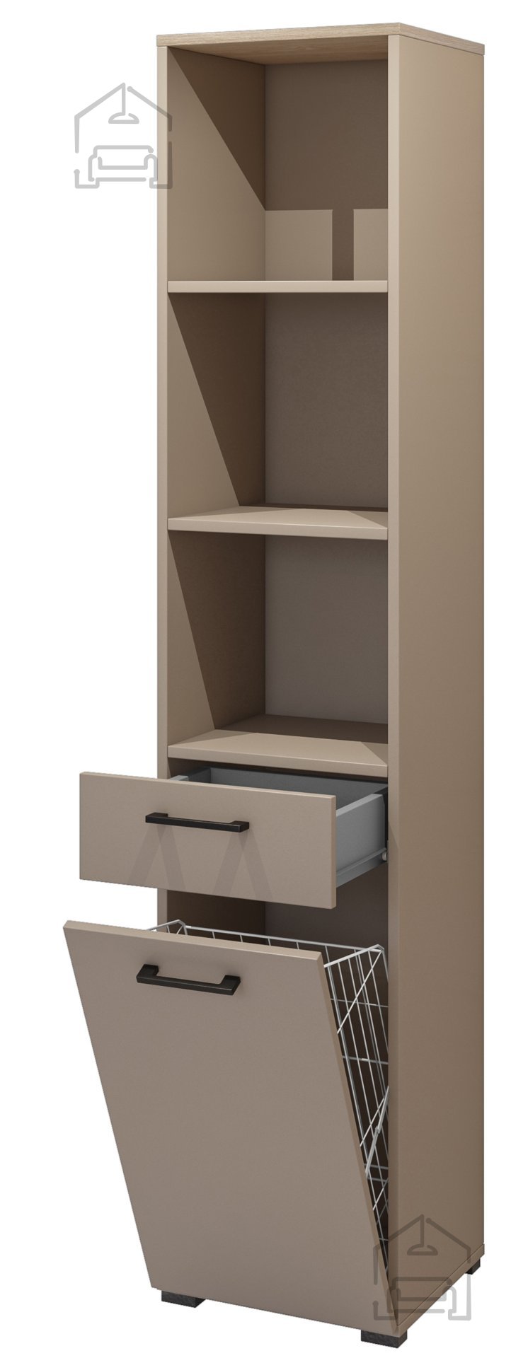 Wir präsentieren den Schrank Roza - 30CDNO66, ein Möbelstück, das Stil, Funktionalität und erstklassige Qualität vereint. Dieses elegante Modell wurde so entworfen, dass es den Ansprüchen eines modernen Haushalts gerecht wird und gleichzeitig mit seiner zeitlosen Optik jeden Raum bereichert. Dank der gelungenen Kombination aus offenen Regalfächern, einer ausziehbaren Schublade und einer Tür mit integriertem Wäschekorb ist der Schrank Roza weit mehr als nur ein Aufbewahrungsmöbel – er ist ein echtes Highlight Ihrer Einrichtung.
