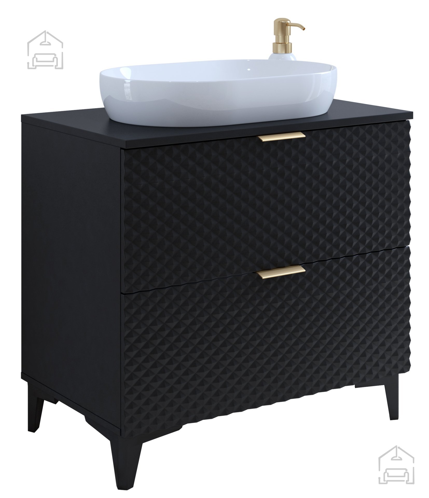 Willkommen in der Welt der Eleganz und Raffinesse mit unserem Waschtischunterschrank Laura 80 cm – Schwarz – 30W3NM48. Dieses hochwertige Möbelstück verleiht Ihrem Badezimmer einen Hauch von Luxus und modernem Design und bietet zugleich durchdachte Stauraumlösungen. Gefertigt in der renommierten Fabrik Helvetia Meble in Polen, steht es für erstklassige Qualität und sorgfältige Verarbeitung.